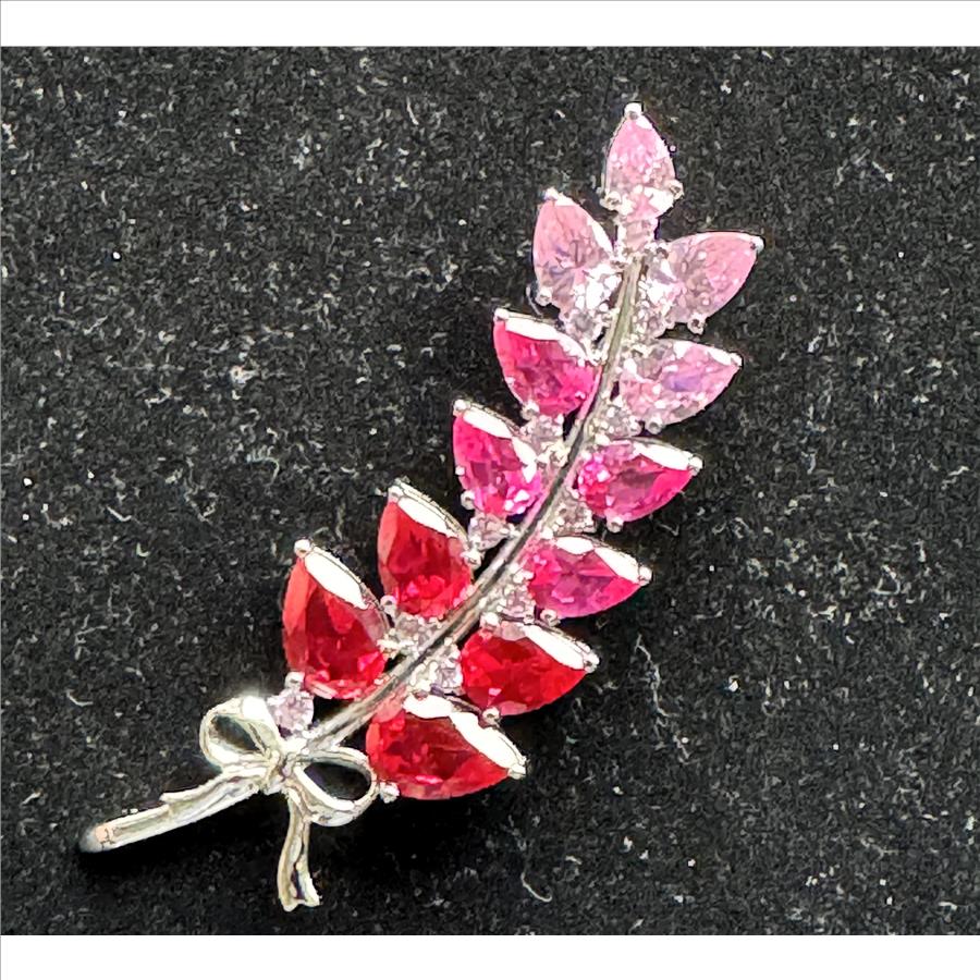 .925 STERLING SILVER VINTAGE SIGNED & MARKED, LIKE RED RUBIES & PINK SAPPHIRES SOLID BROOCH, NICE