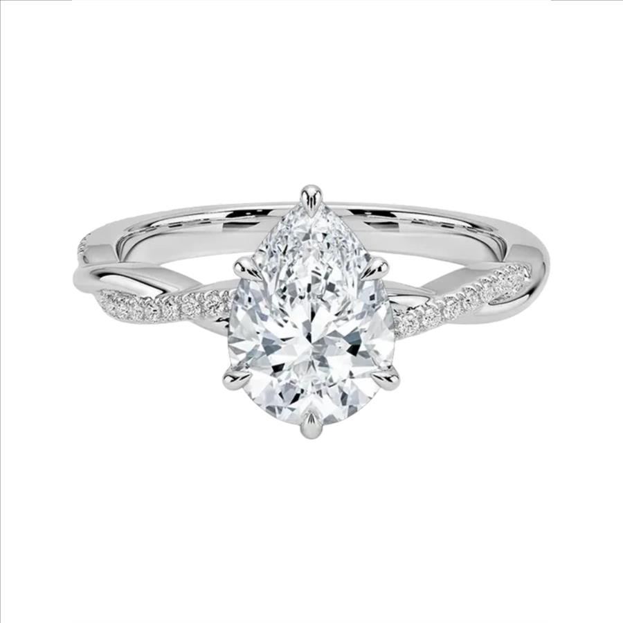 925S Sterling Silver 1.5ct Moissanite Twist Pear Ring