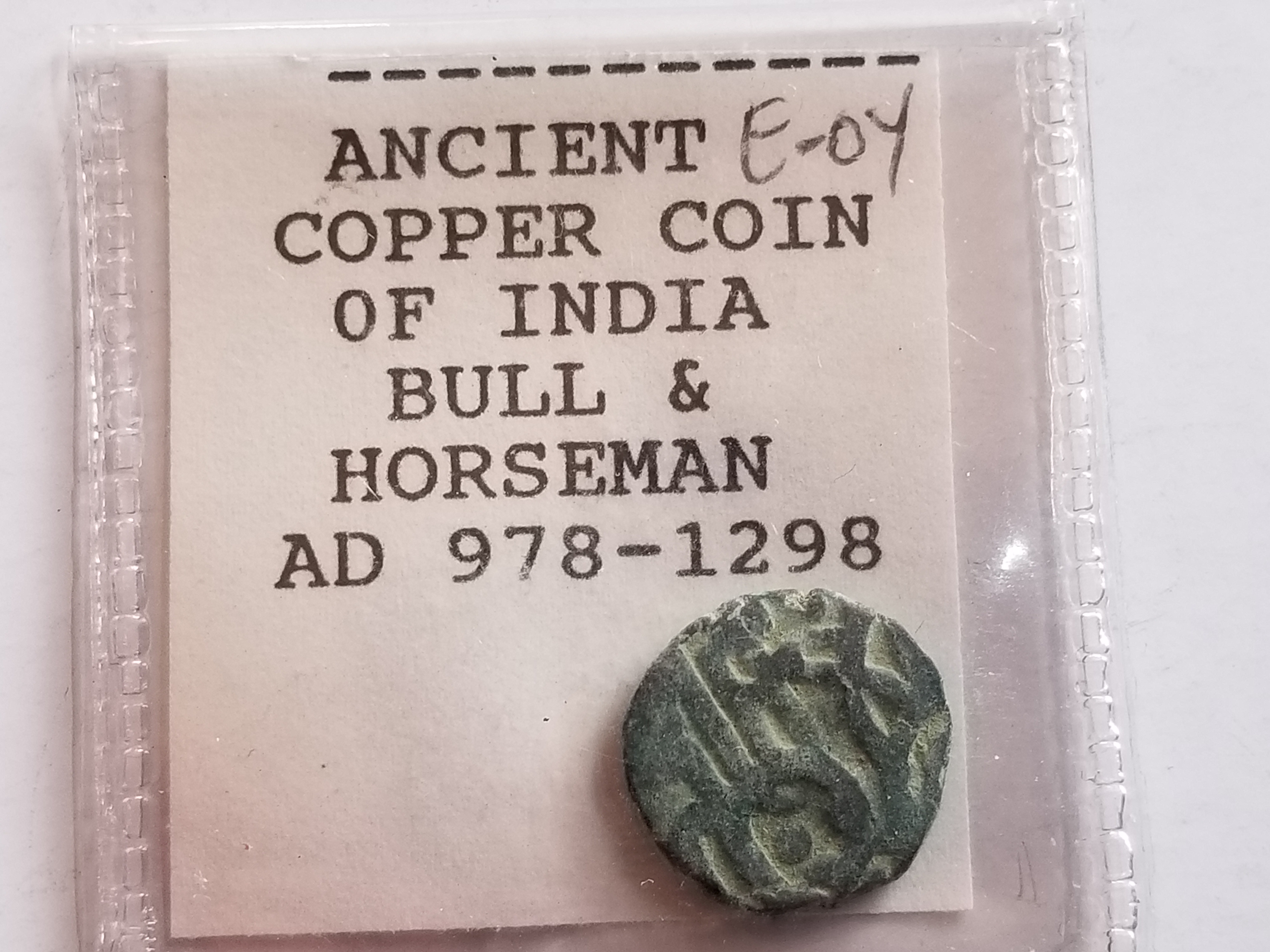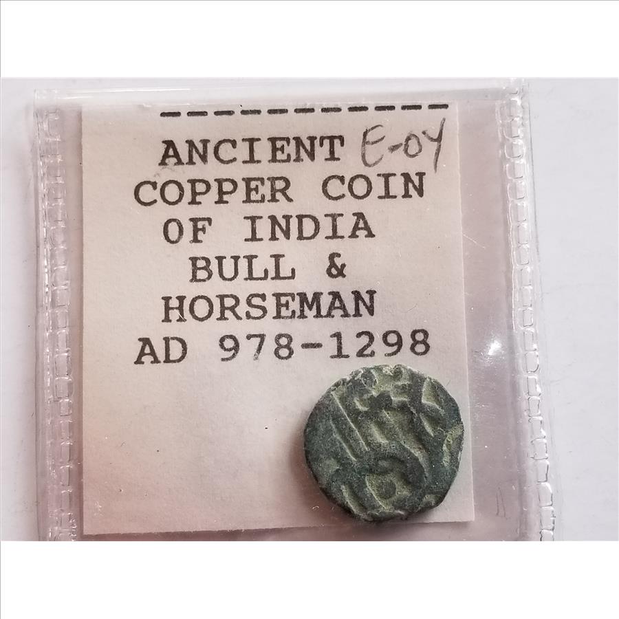 978-1298 Ancient Copper Coin Of India Bull And Horseman