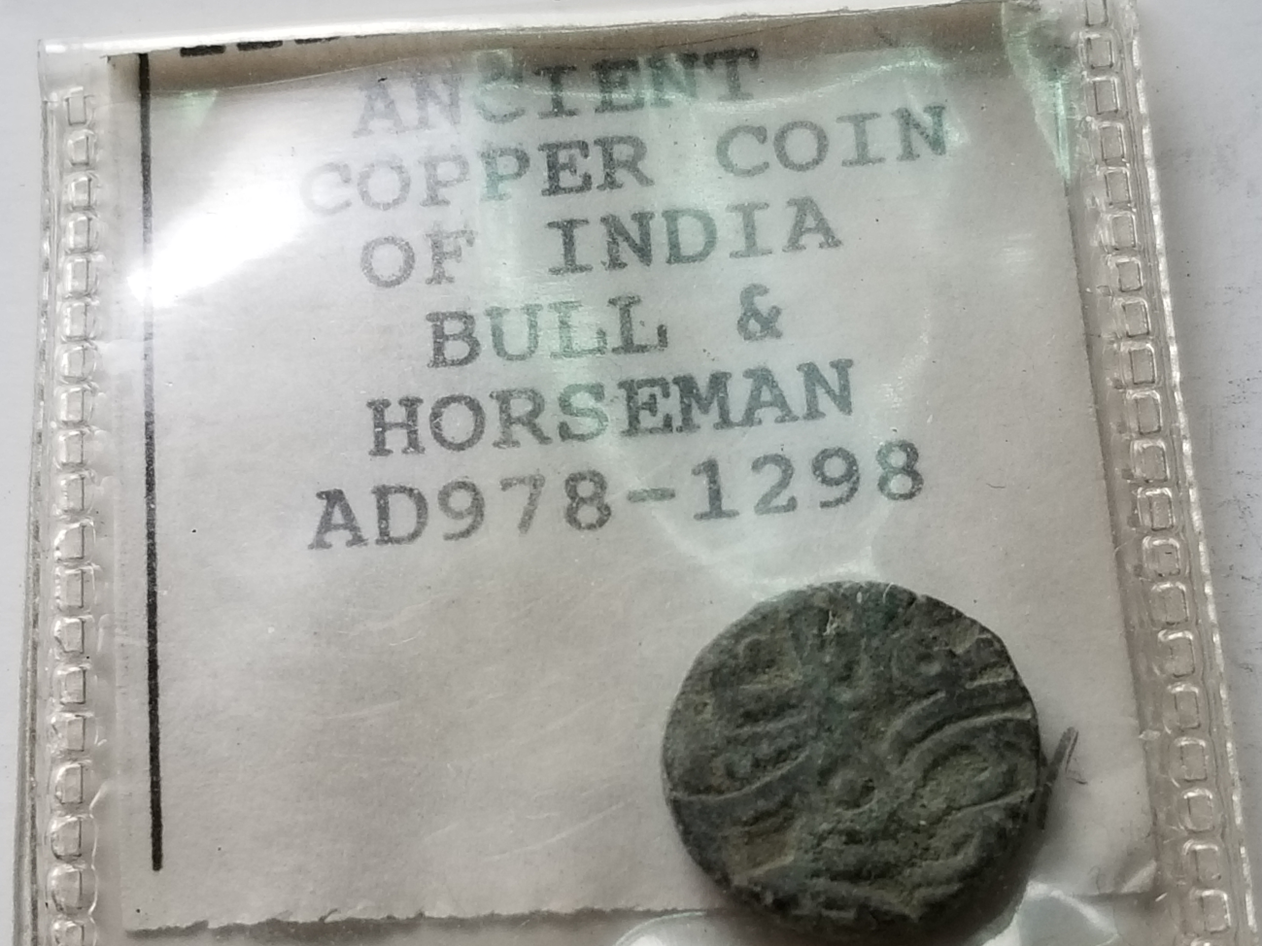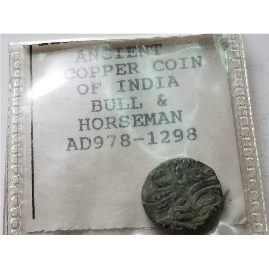 978-1298 Ancient Copper Coin Of India Bull And Horseman