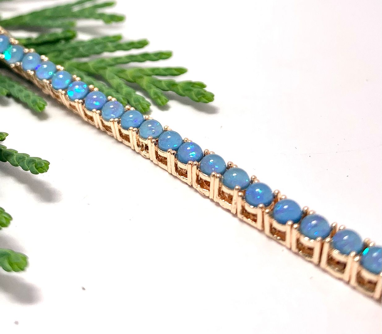 $99 Retail 5.00ctw Blue Opal Tennis Bracelet 7” Long