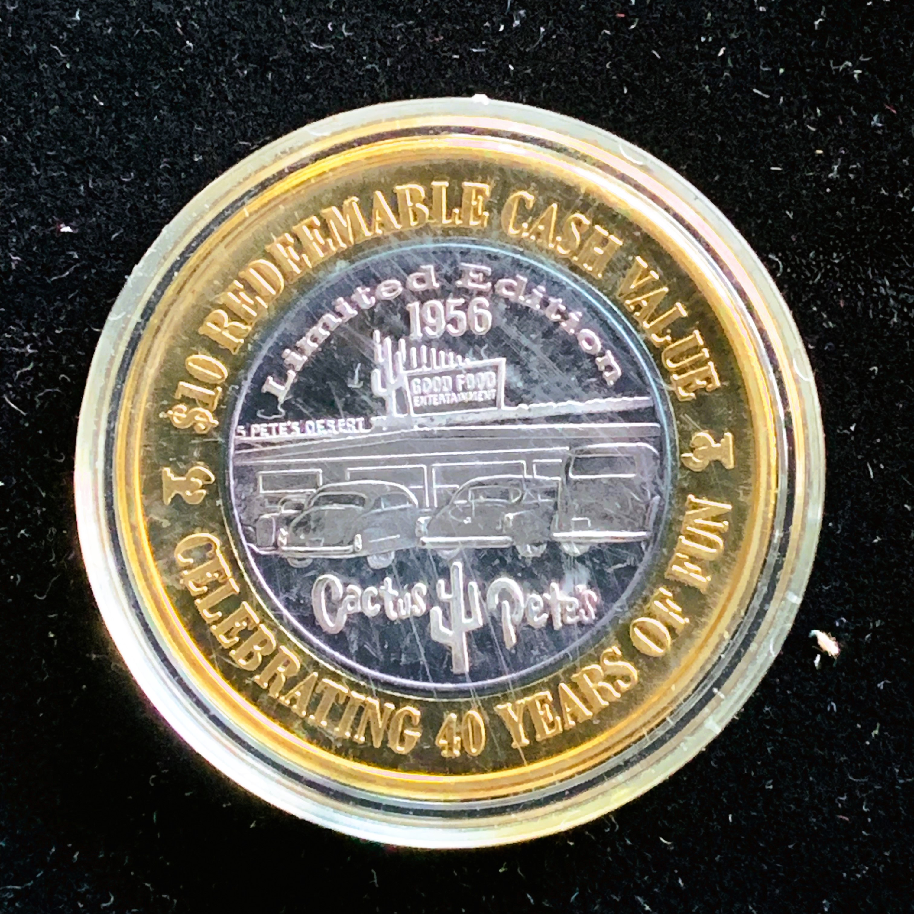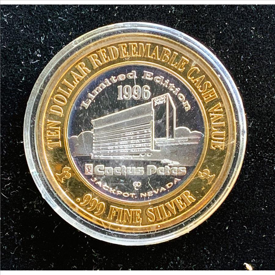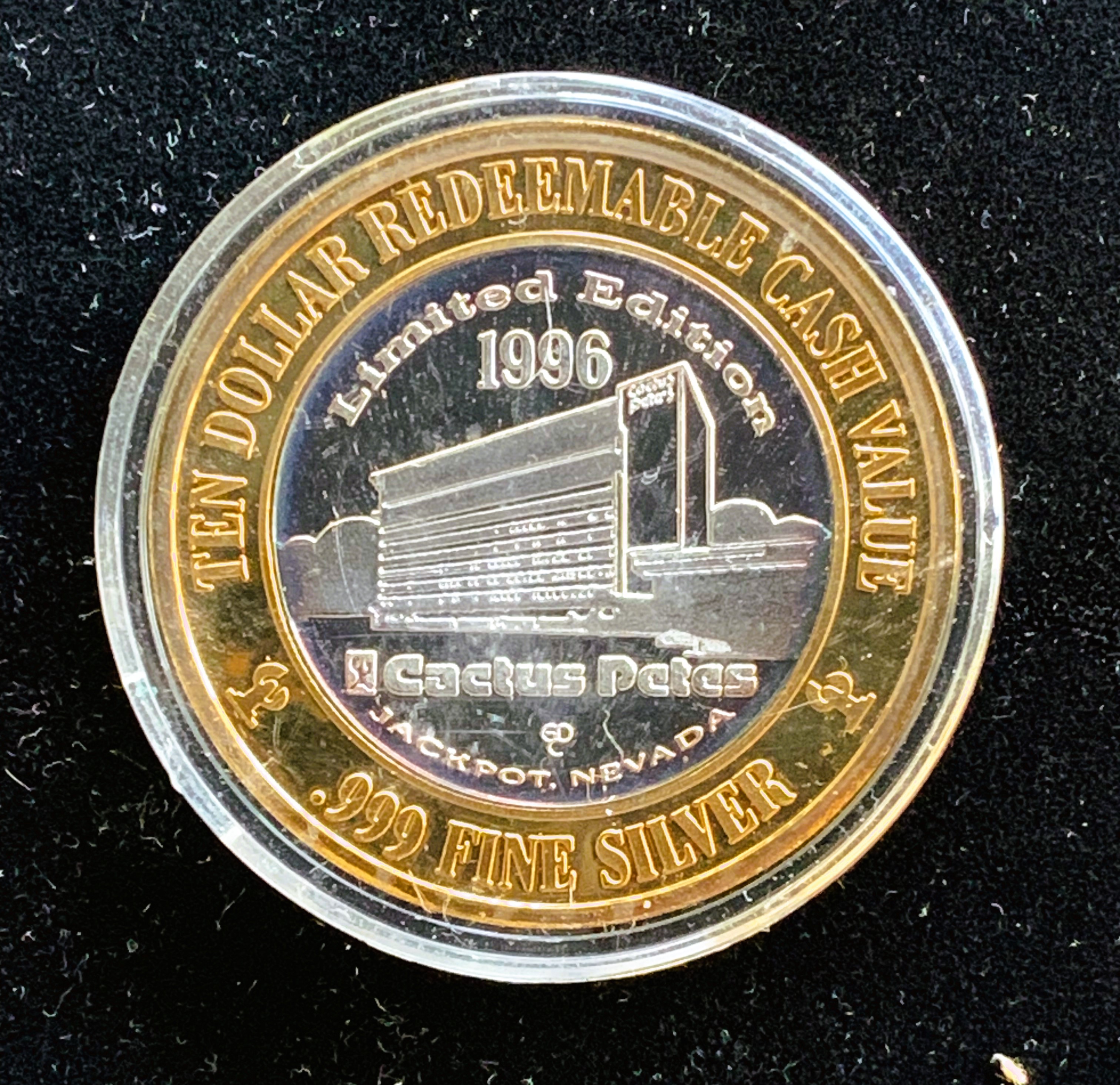 .999 FINE SILVER LIMITED EDITION COIN, CACTUS PETES, JACKPOT NEVADA, FIRST STRIKE $10 CASH VALUE, UNCIRCULATED IN CAPSULE