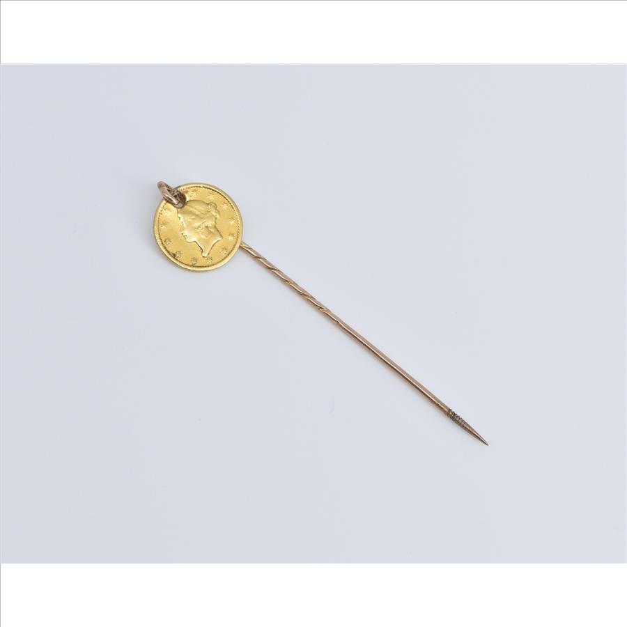 9K 1849 Type One $1 One Dollar Gold Coin Yellow Gold Stick Pin