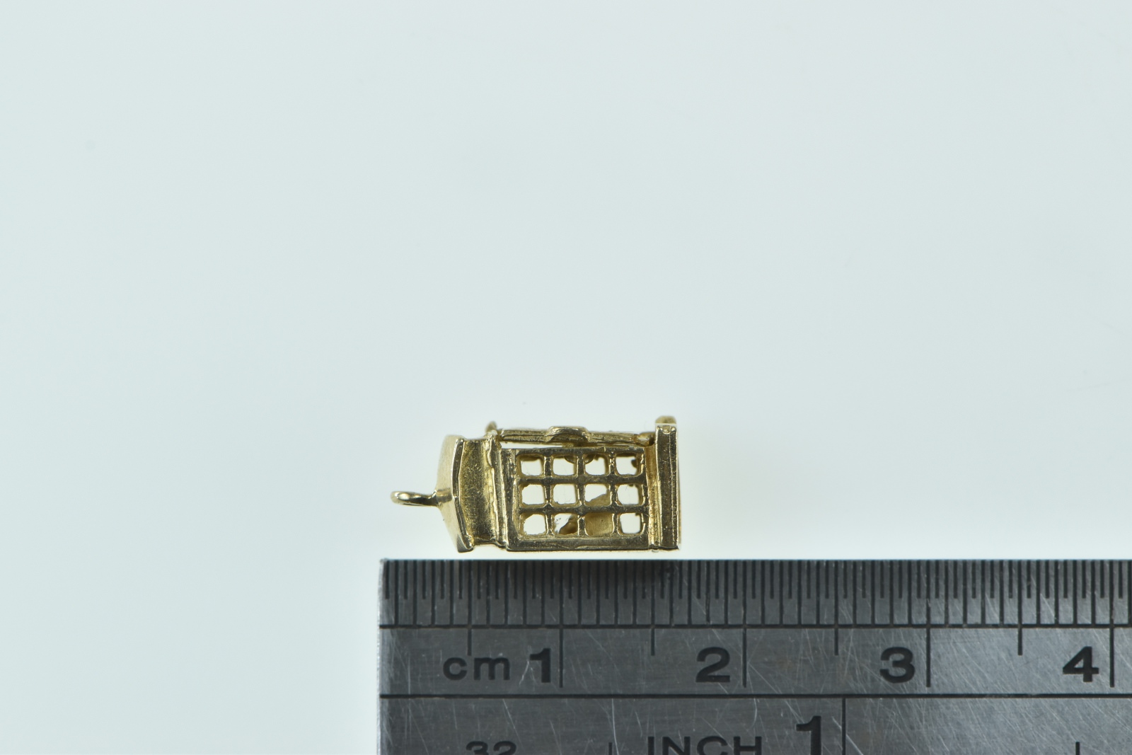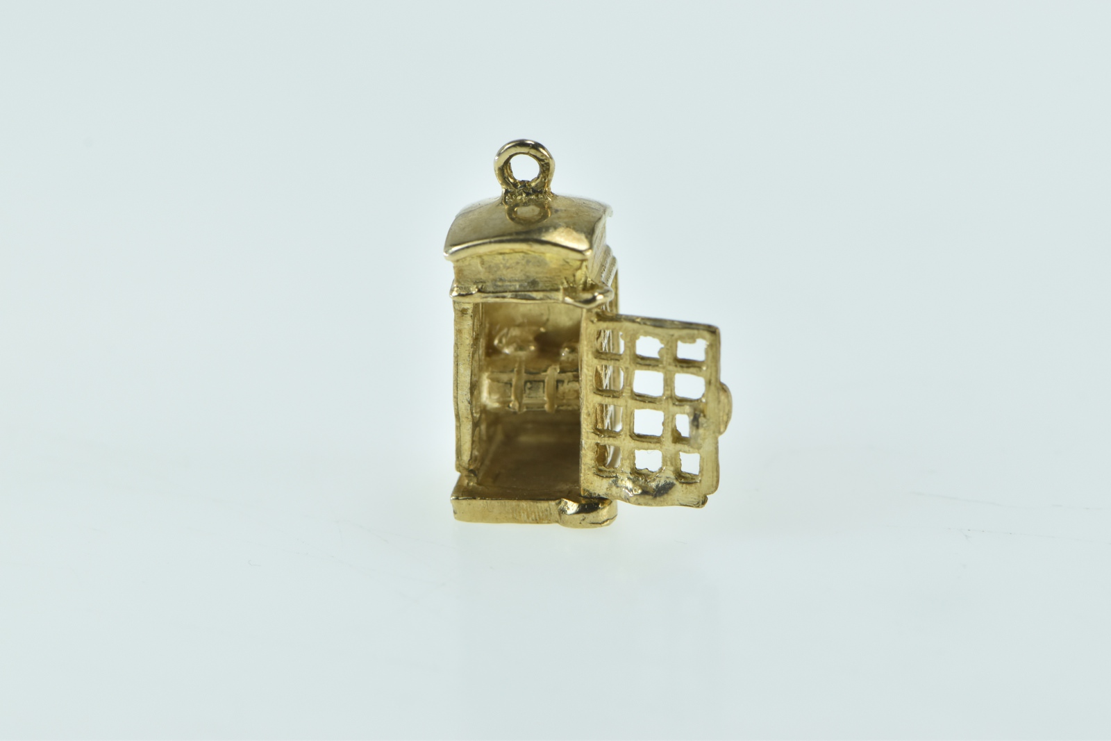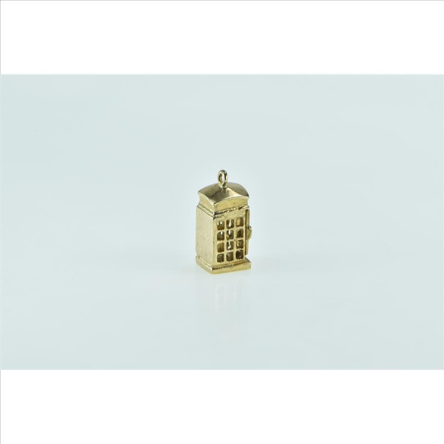 Item:  9K 3D Articulated London Phone Box Souvenir Yellow Gold Charm/Pendant