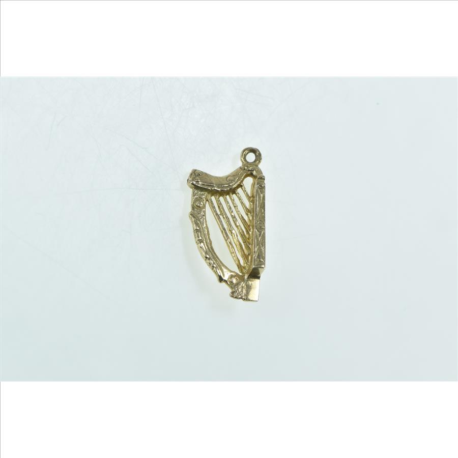 9K 3D Ornate Harp Musical Instrument Yellow Gold Charm/Pendant