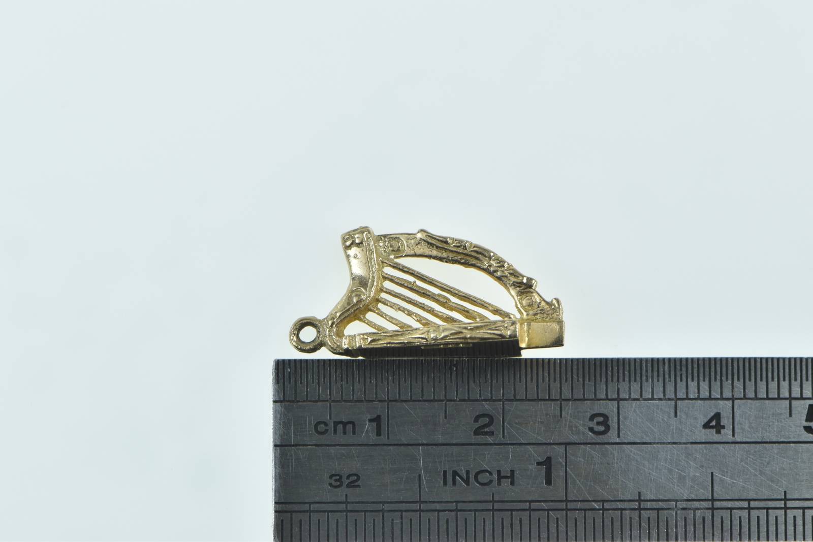 Item:  9K 3D Ornate Harp Musical Instrument Yellow Gold Charm/Pendant