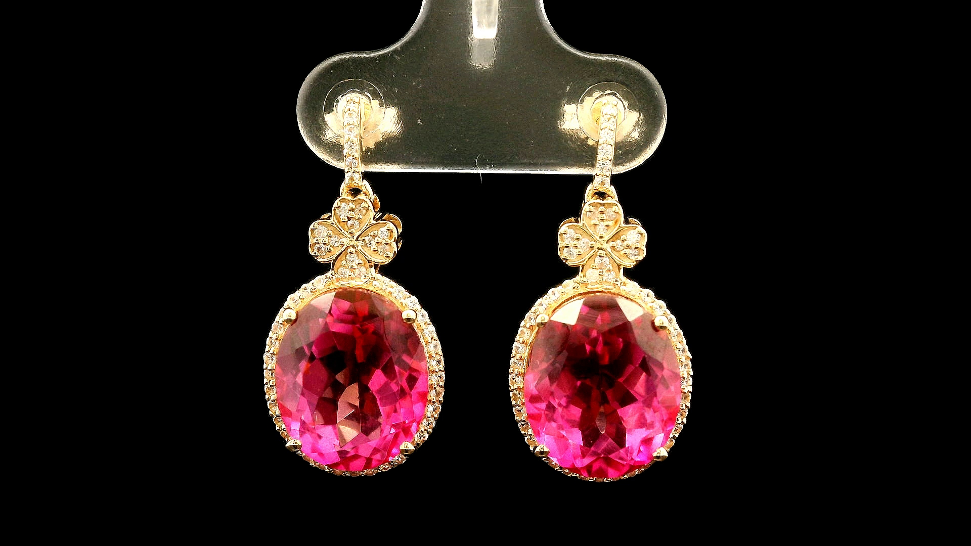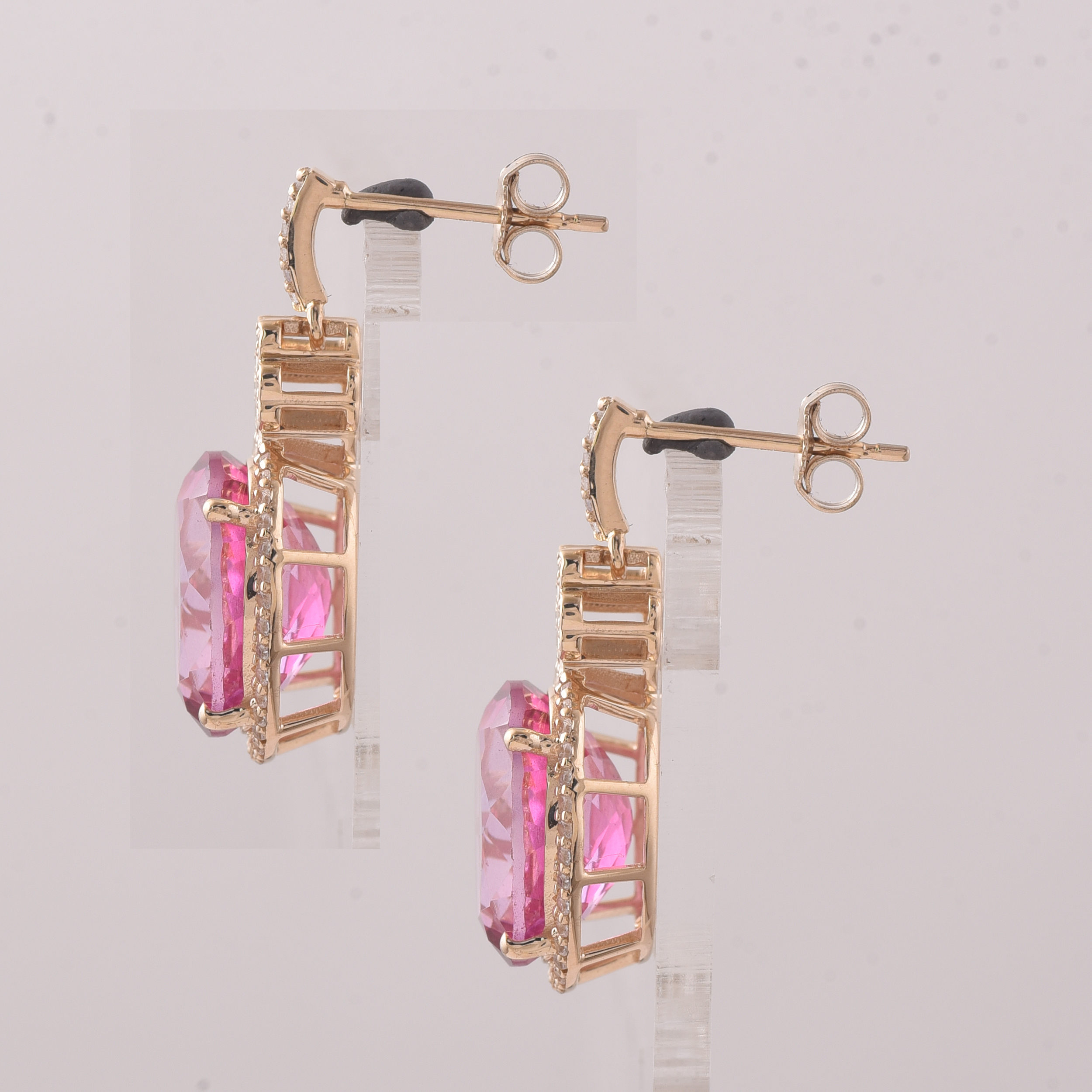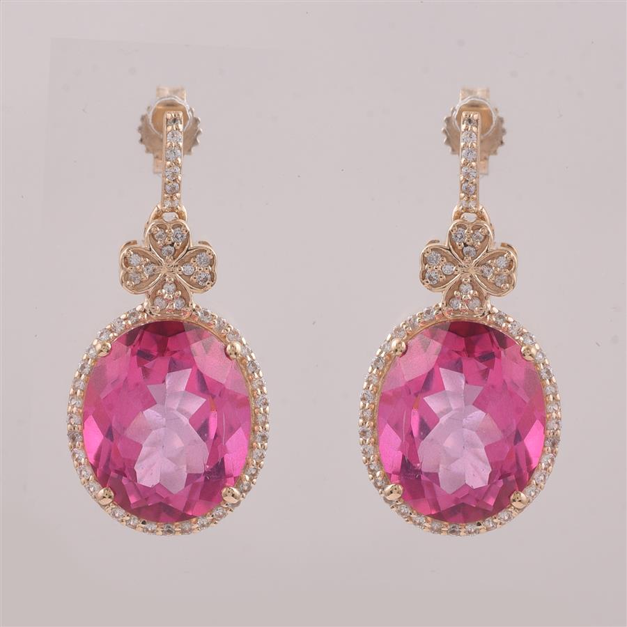 9K Gold 12.82 Ct Oval Pink Topaz Earrings