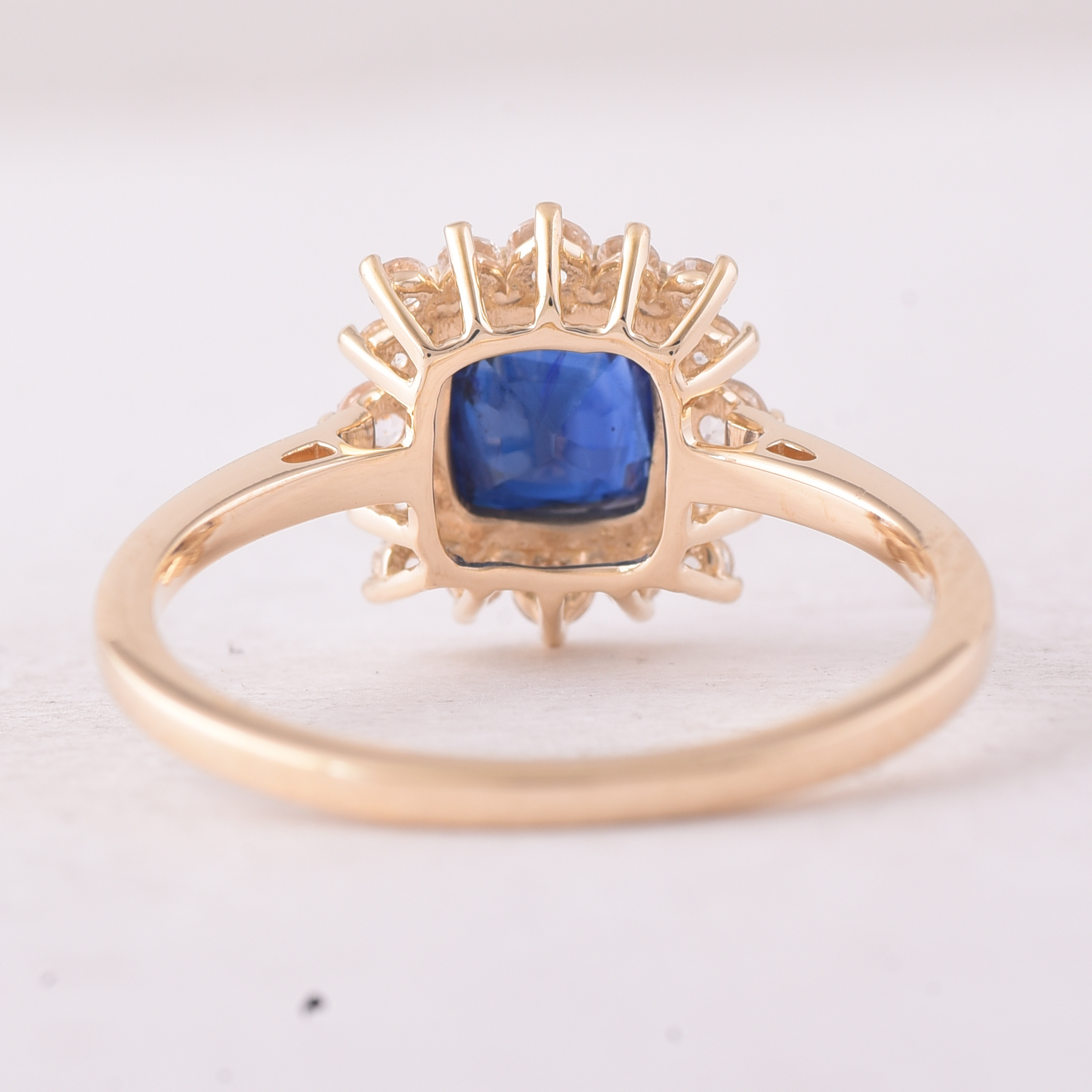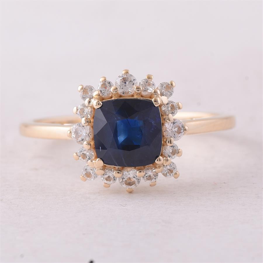 9K Gold 1.48 Ct Cushion Sapphire Ring 7 US Ring Size