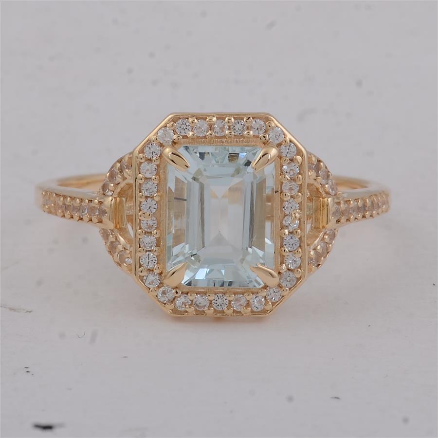 9K Gold 1.65 Ct Octagon Aquamarine Ring 7 US Ring Size