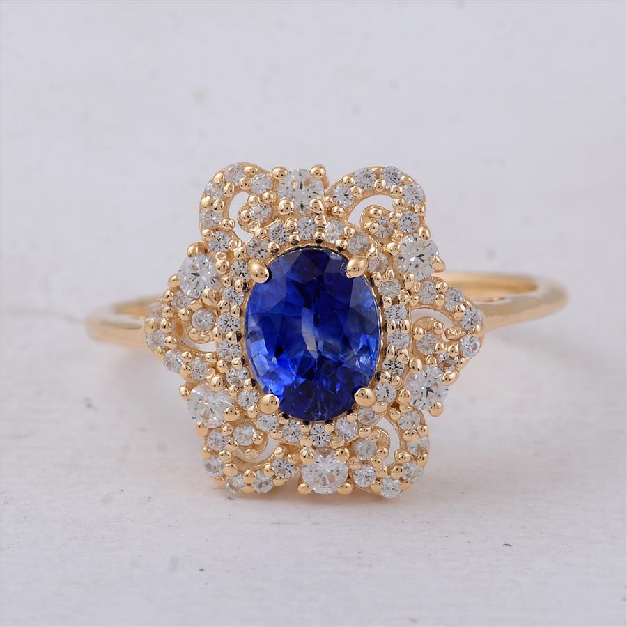 9K Gold 1.82 Ct Oval Sapphire Ring 7 US Ring Size