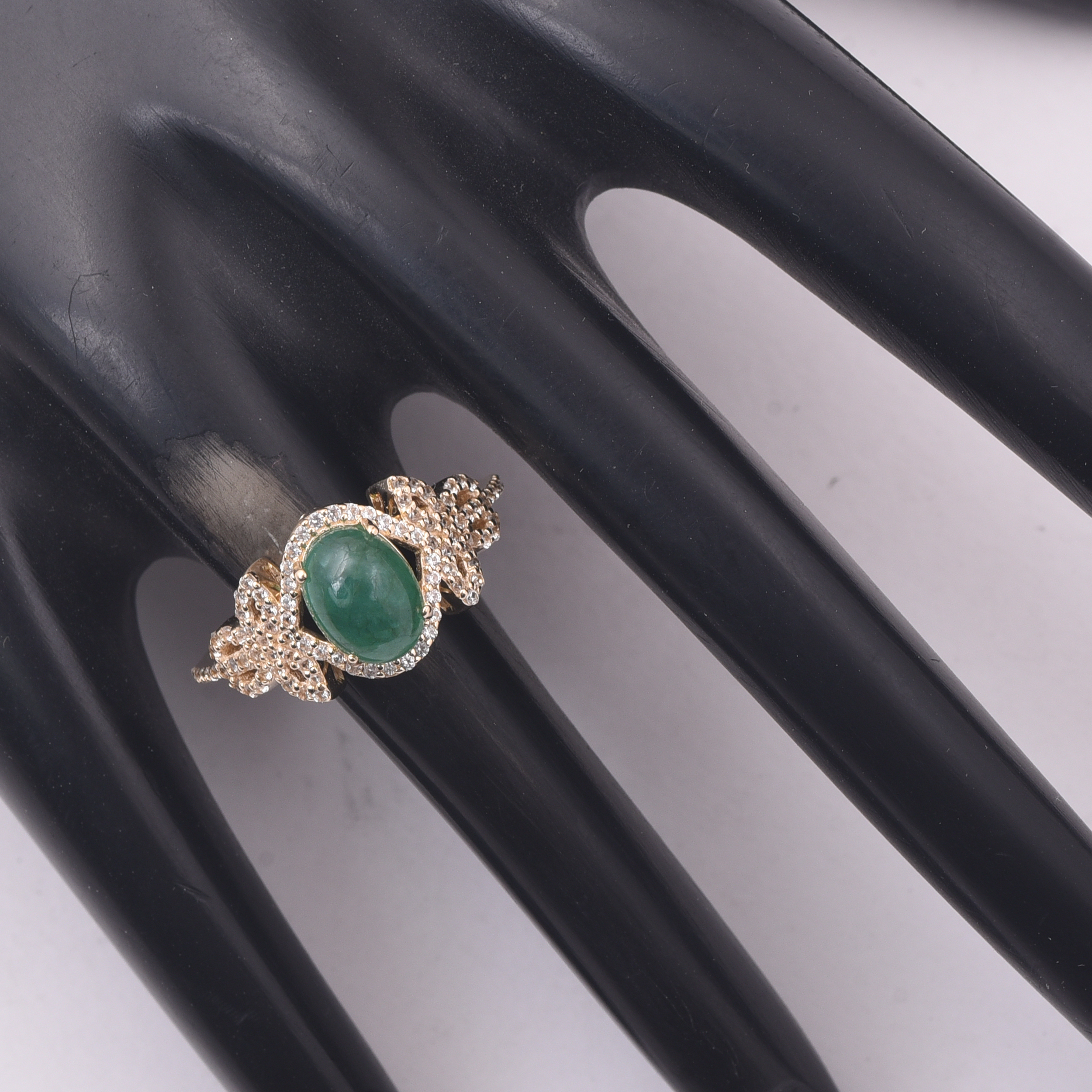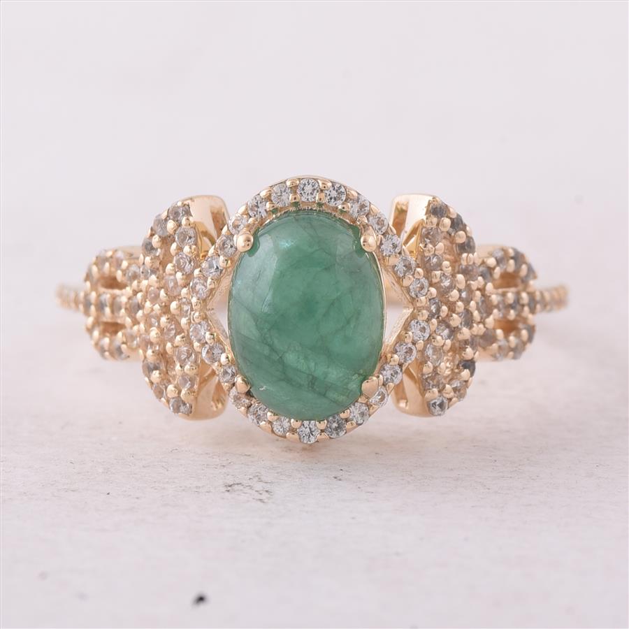 9K Gold 1.90 Ct Oval Emerald Ring 7 US Ring Size