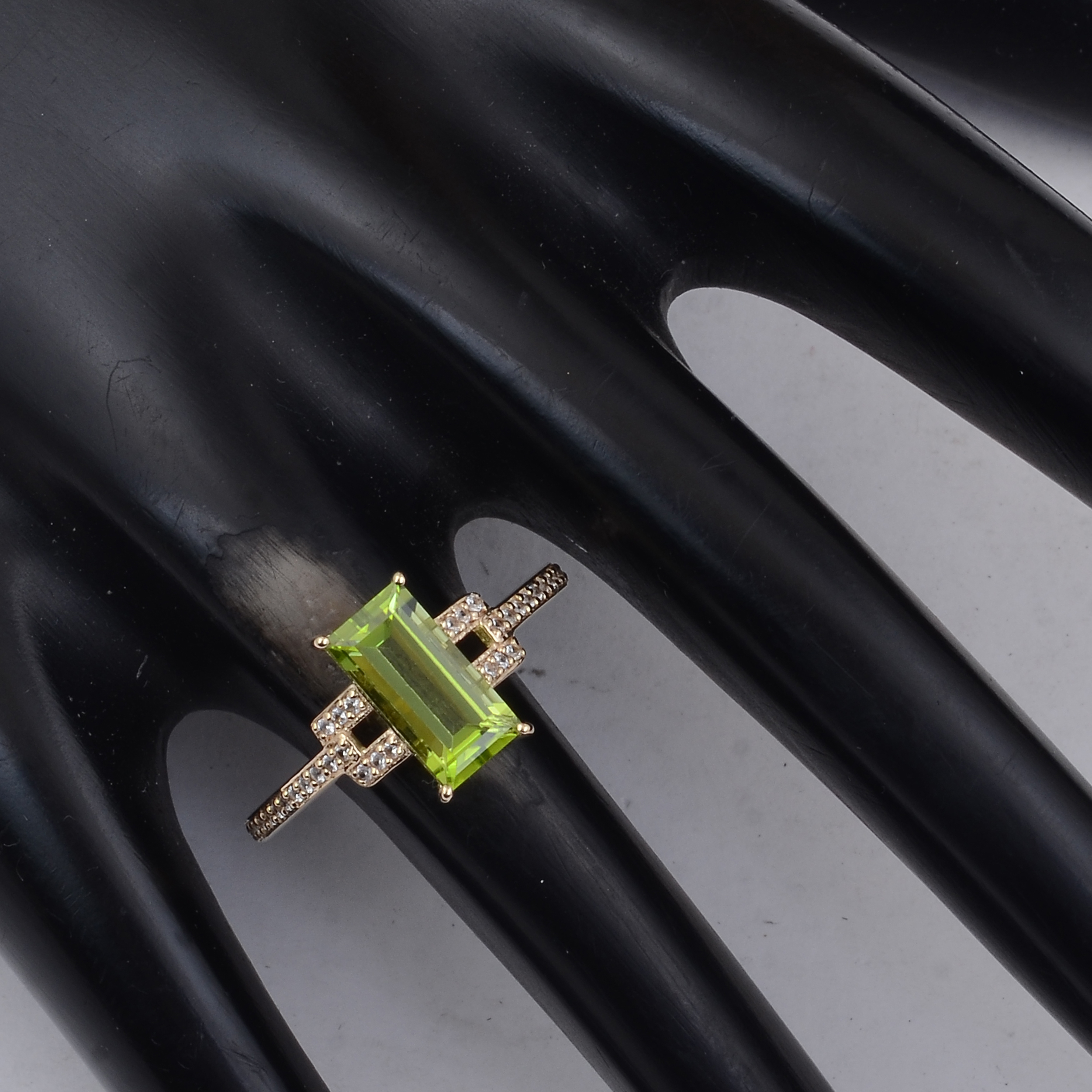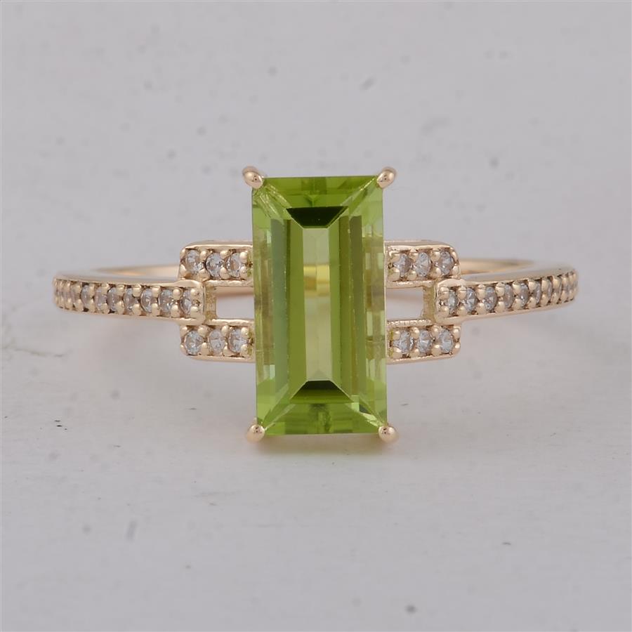 9K Gold 1.96 Ct Baguette Peridot Ring 7 US Ring Size