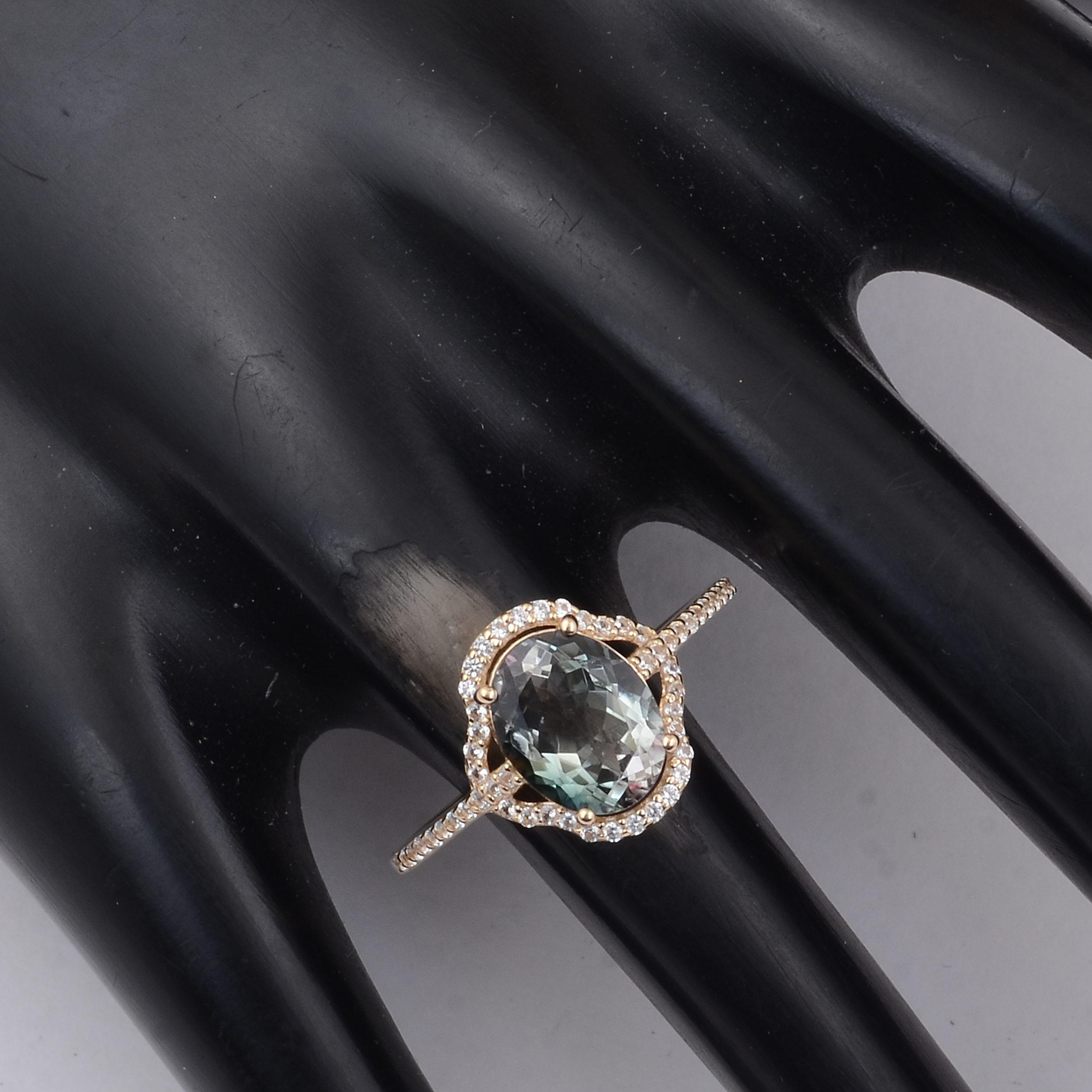 9K Gold 2.12 Ct Oval Multi Tourmaline Ring 7 US Ring Size
