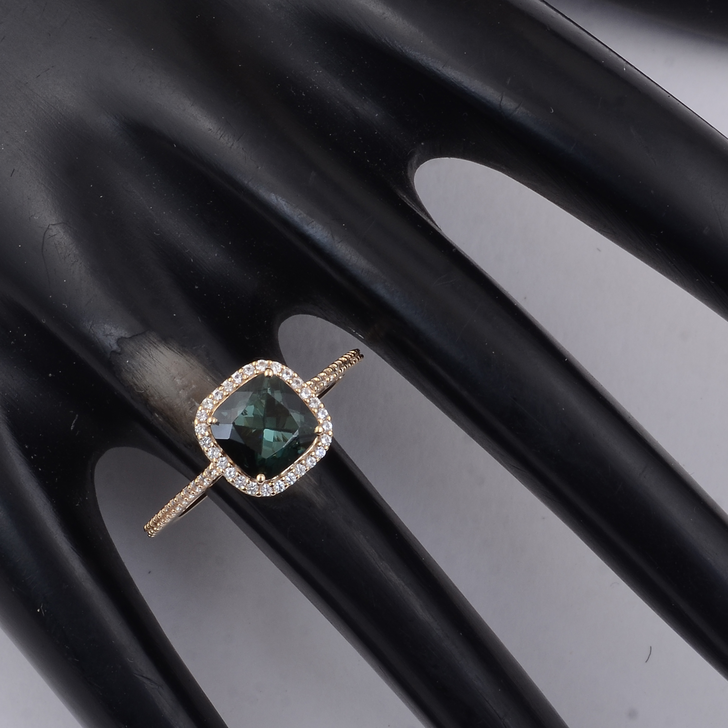 9K Gold 2.14 Ct Cushion Tourmaline Ring 7 US Ring Size