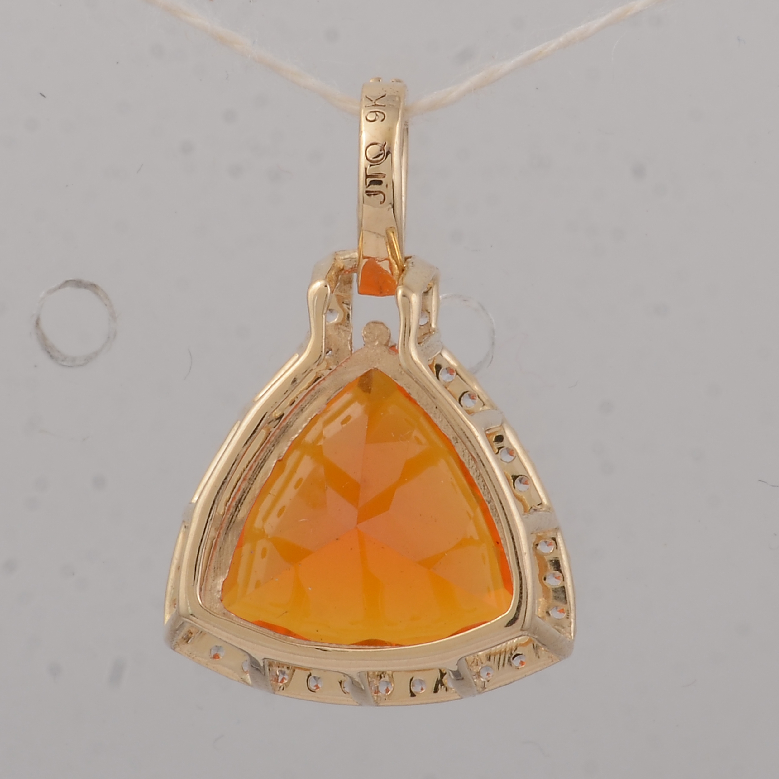 9K Gold 2.31 Ct Trillion Fire Opal Pendant