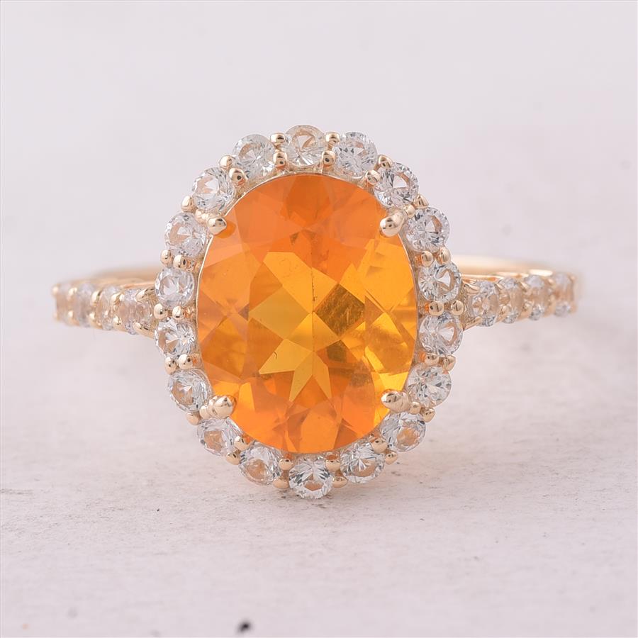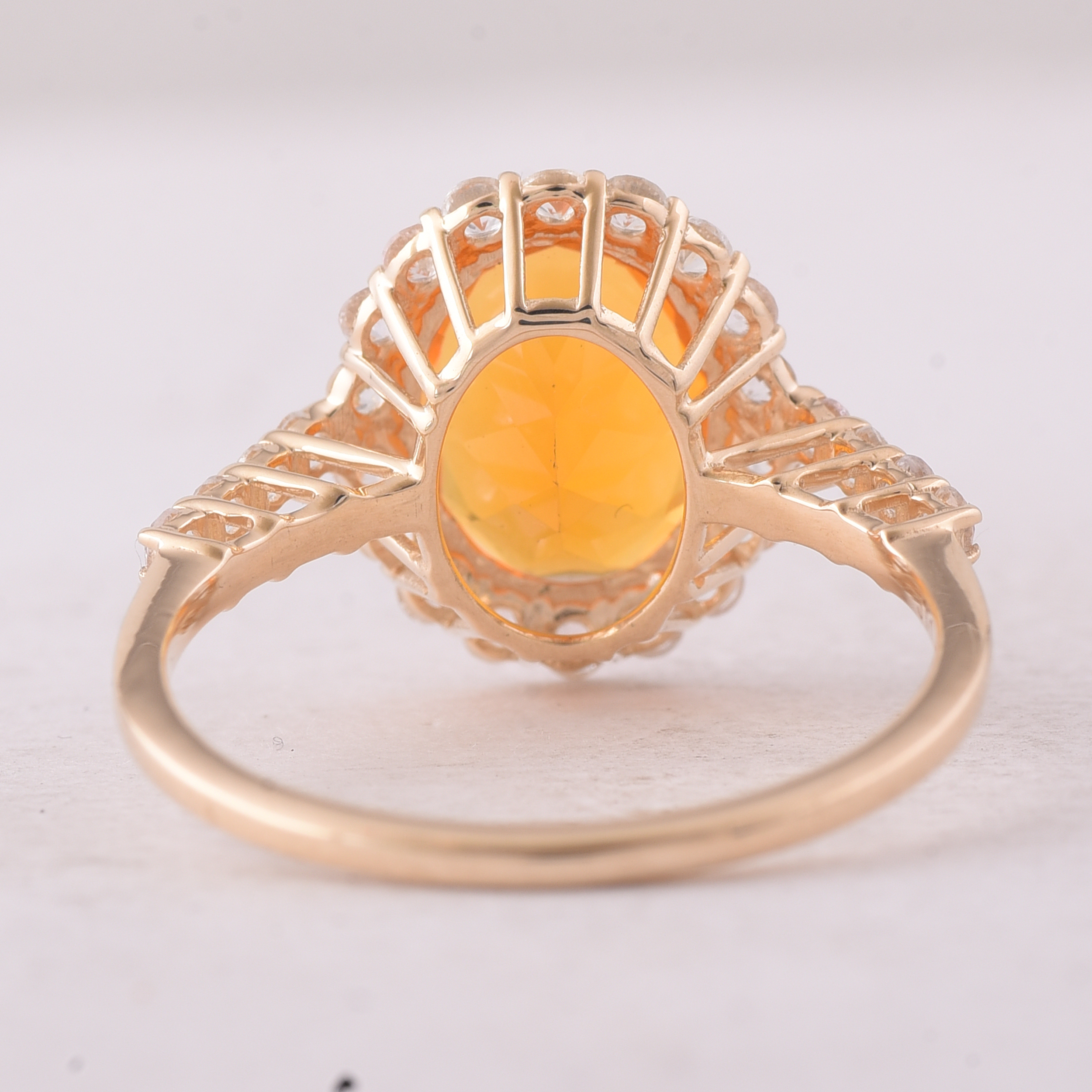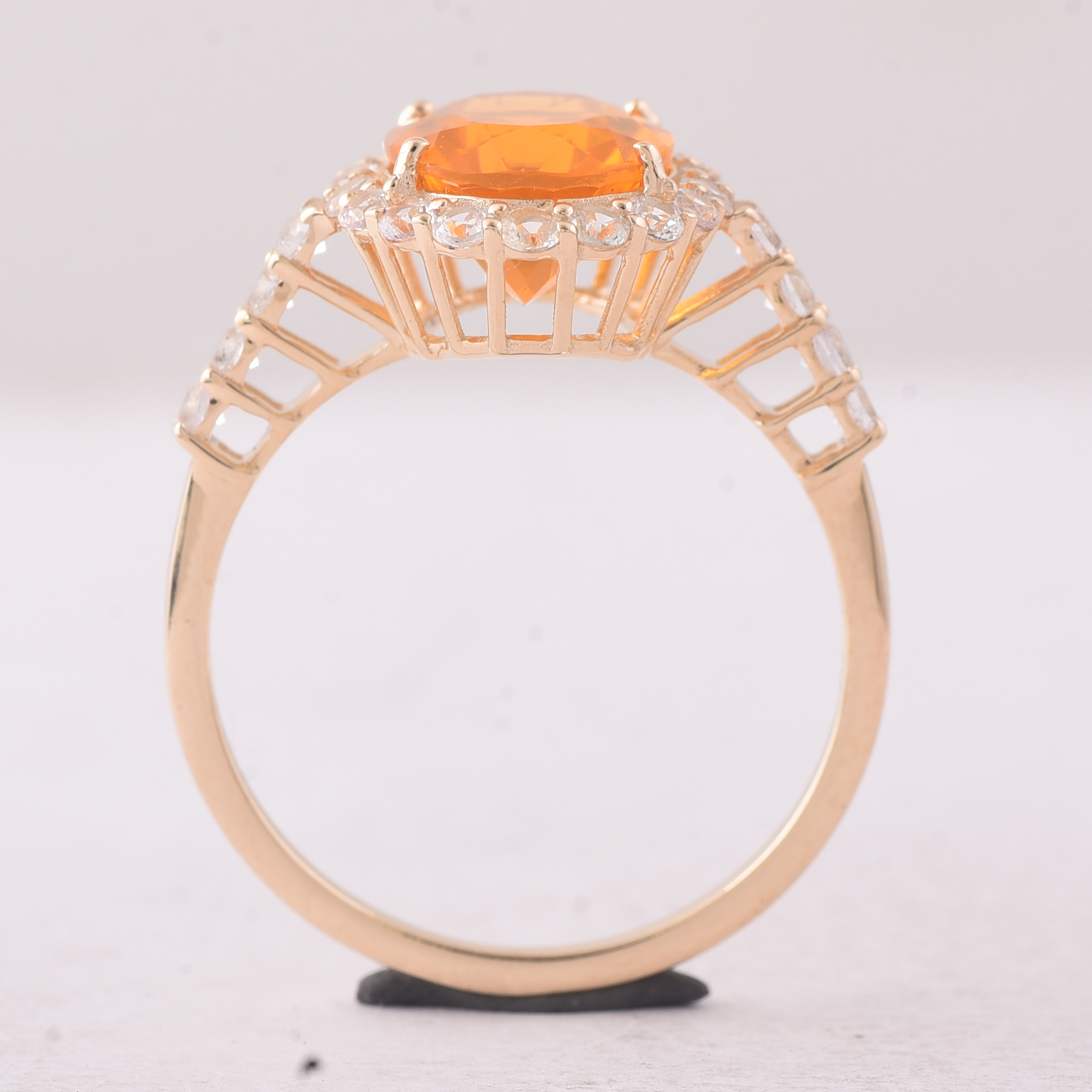 9K Gold 2.47 Ct Oval Fire Opal Ring 7 US Ring Size