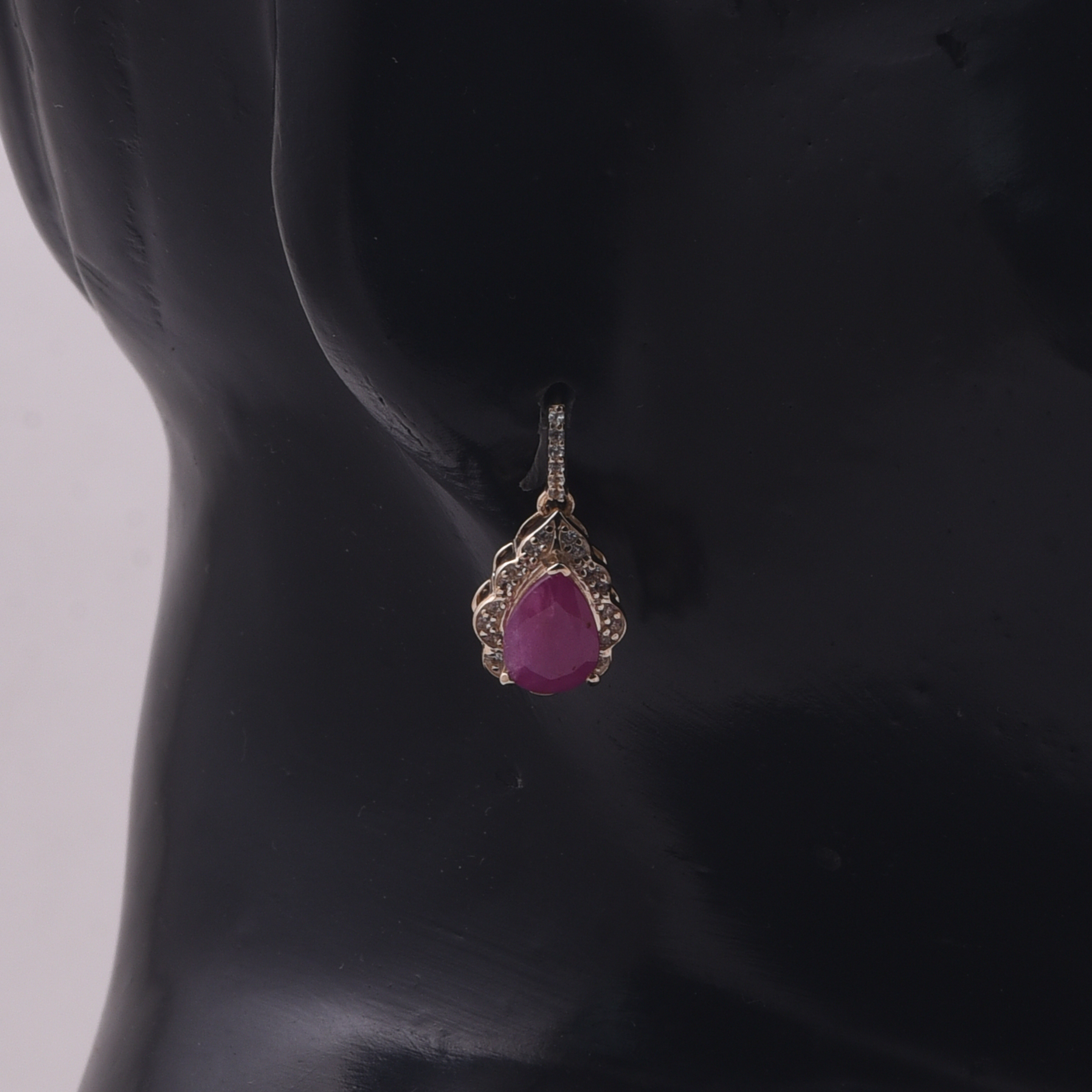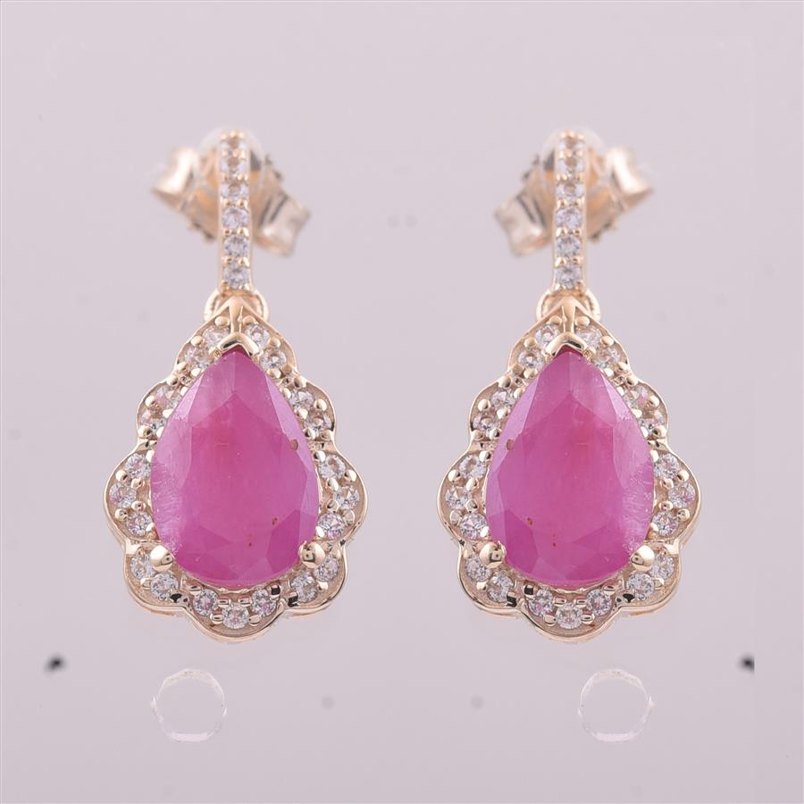 9K Gold 2.64 Ct Pear Ruby Earrings
