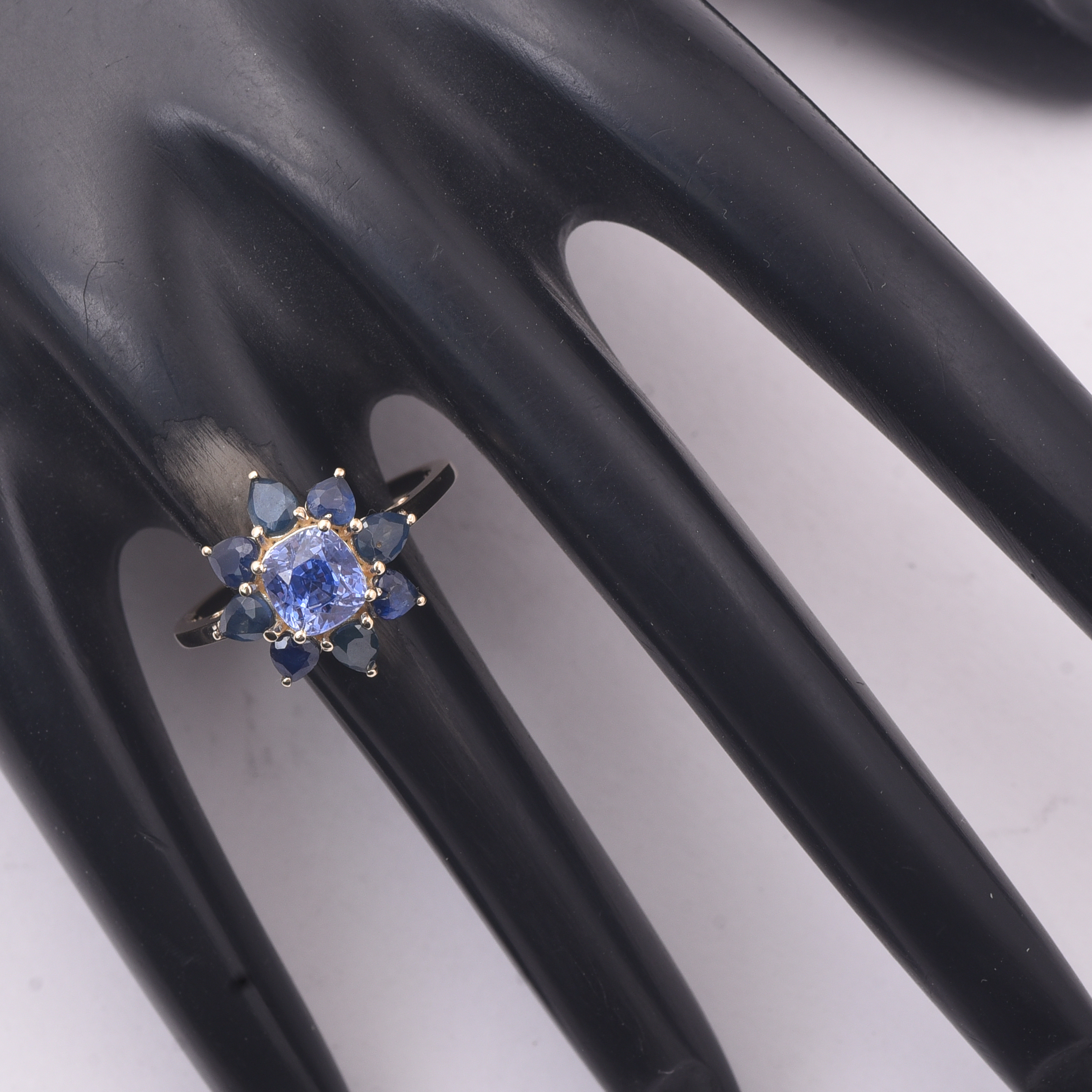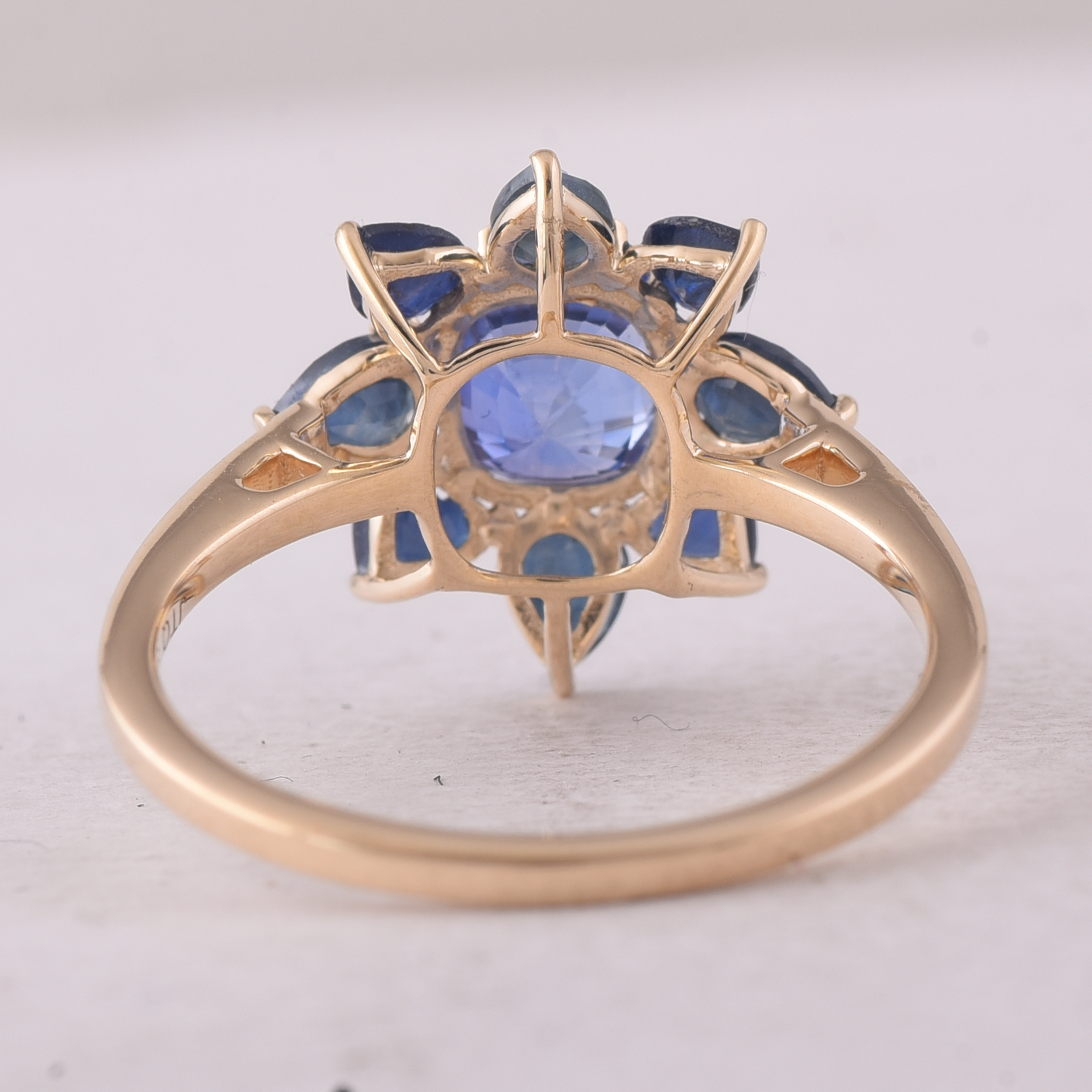 9K Gold 2.83 Ct Cushion Sapphire Ring 7 US Ring Size
