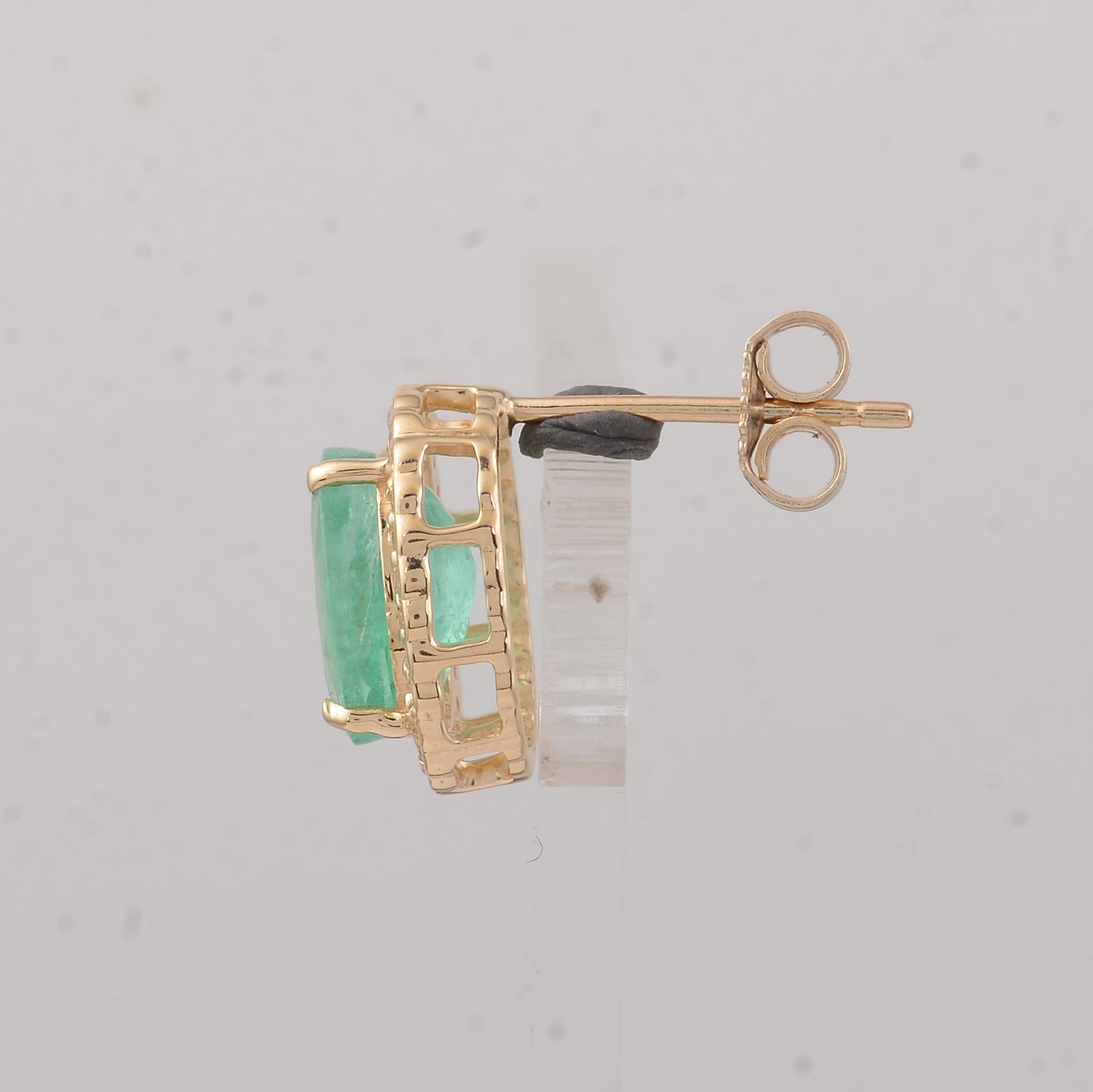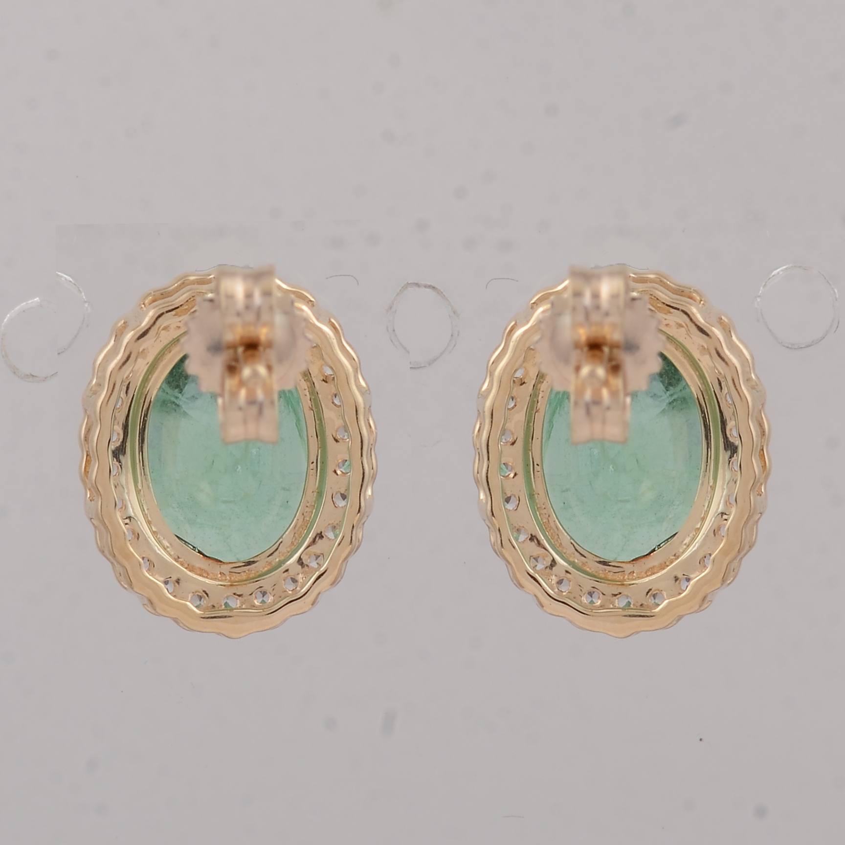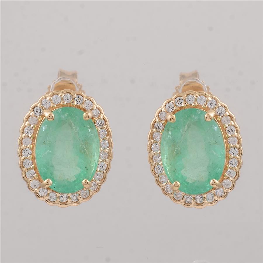 9K Gold 2.92 Ct Oval Emerald Earrings