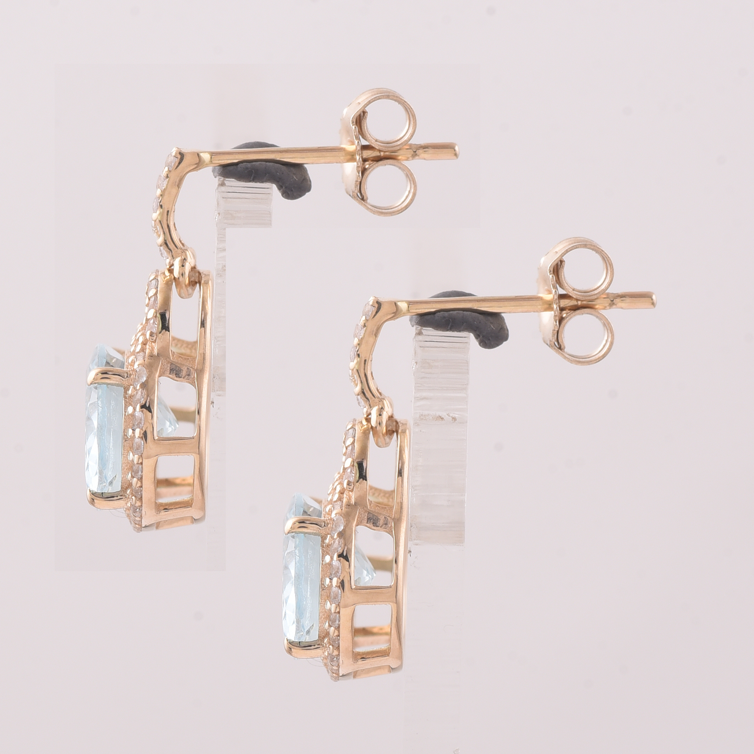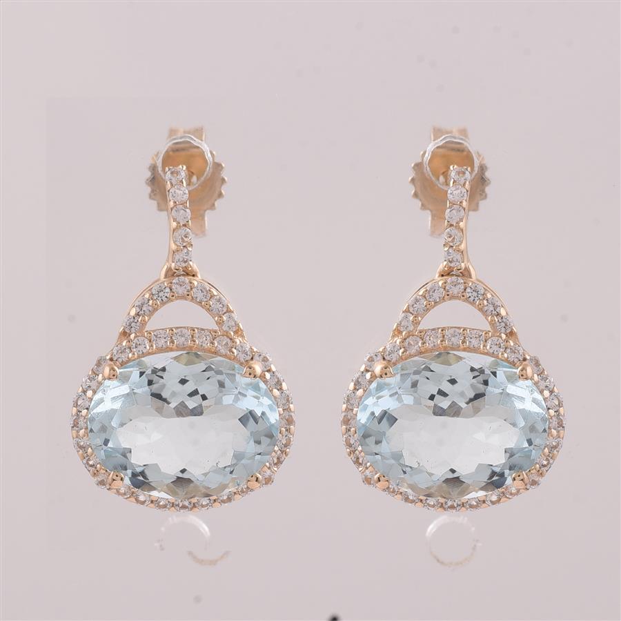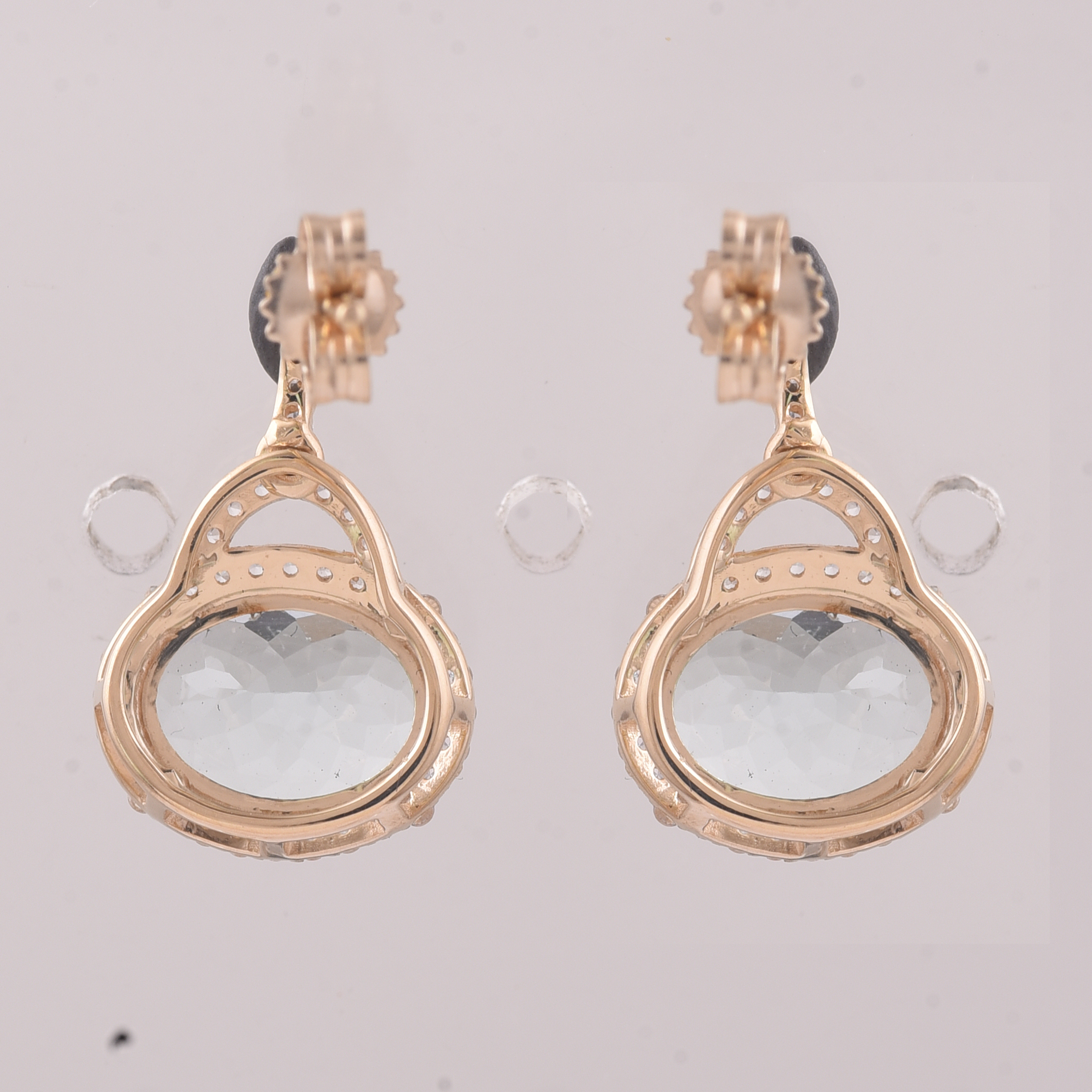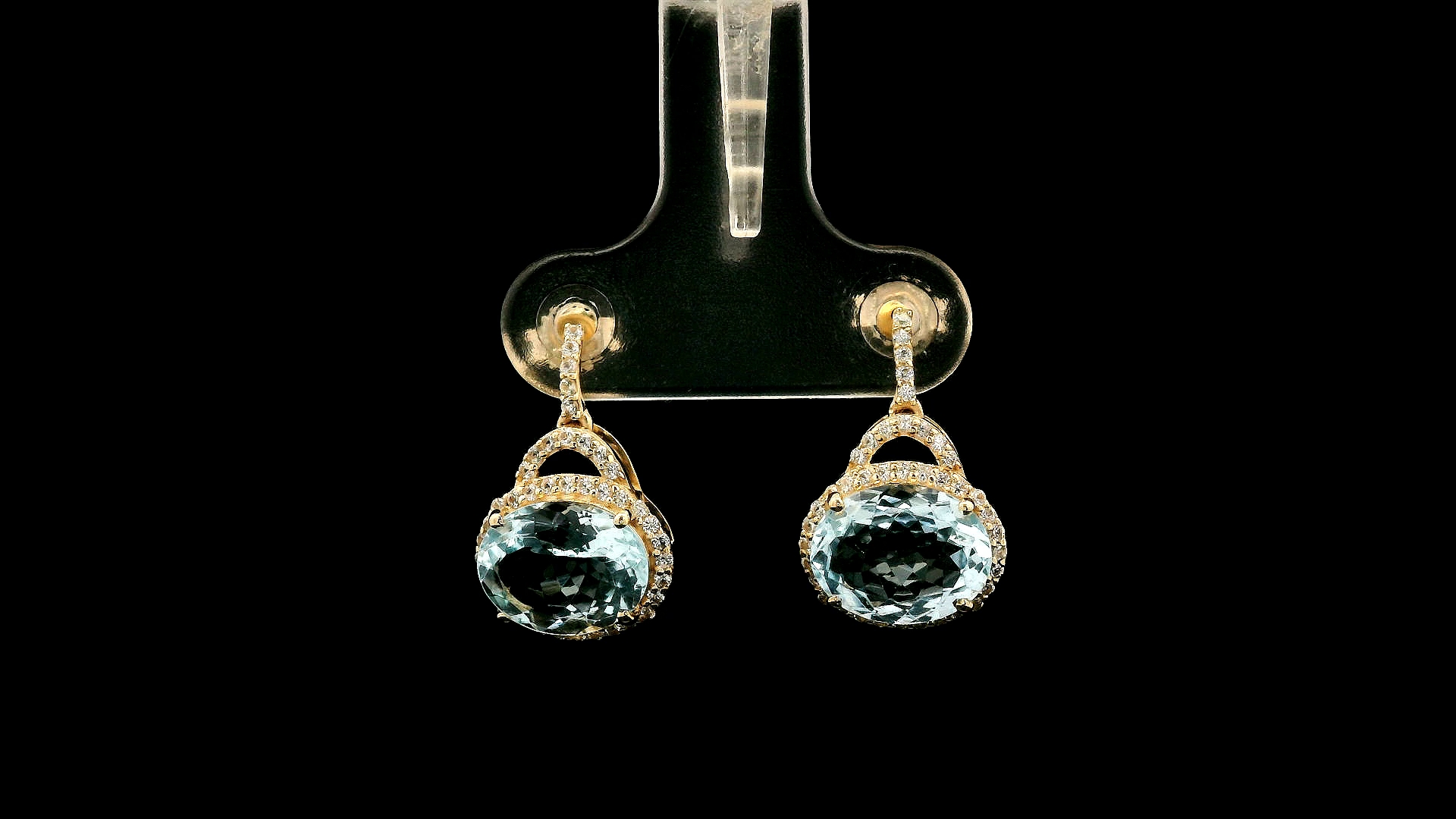 9K Gold 3.16 Ct Oval Aquamarine Earrings
