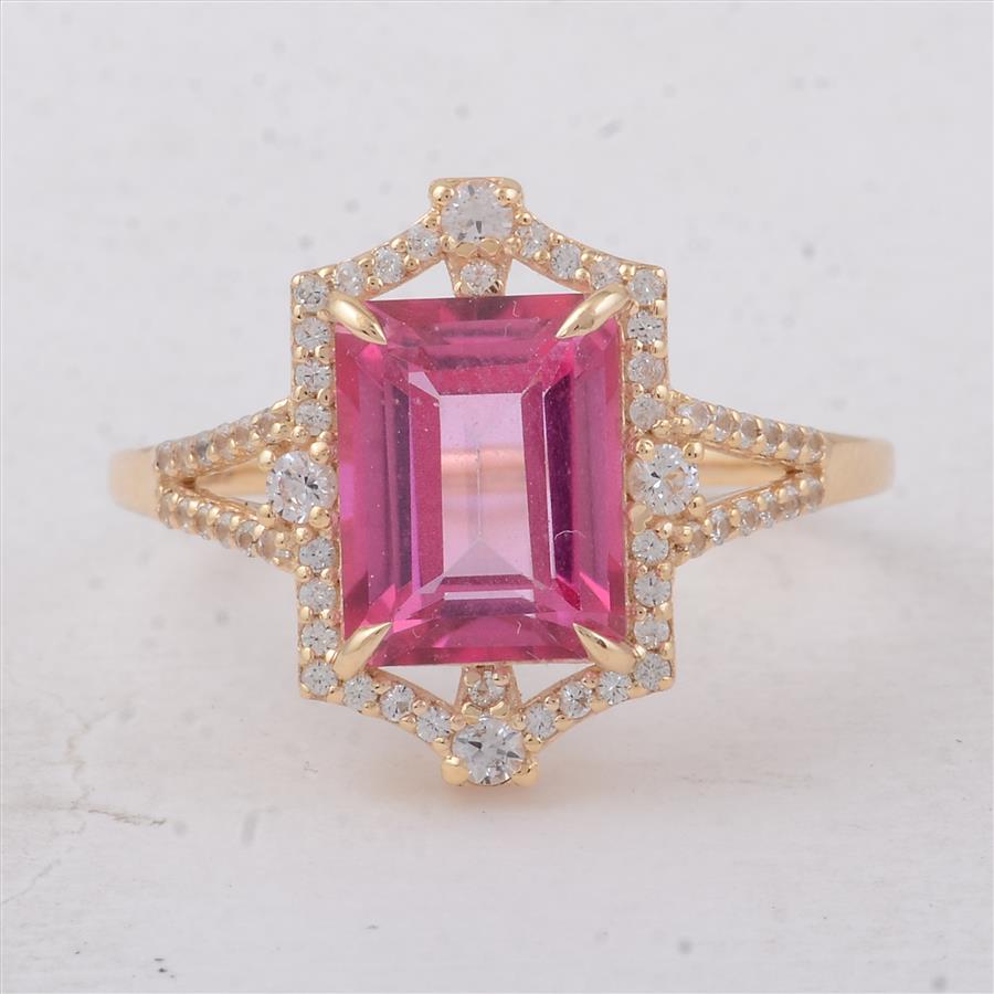 9K Gold 3.22 Ct Octagon Pink Topaz Ring 7 US Ring Size