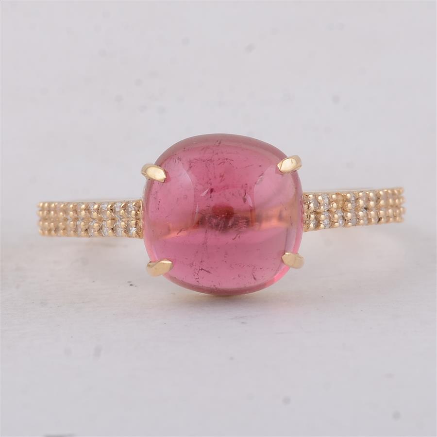 3.47 Total Carat Tourmaline 9K Gold Ring Specifications - Total Weight 2.03 g - Center Gemstone Tourmaline - Gemstone Carat Weight 3.3 Carats - Gemstone Measurements 9X9X4.70 mm - Additional Gemstones White Sapphire - Additional Gemstone Weight 0.17 Carats - Ring Size (US): 7 We ship within 1–2 business days from our US warehouse.