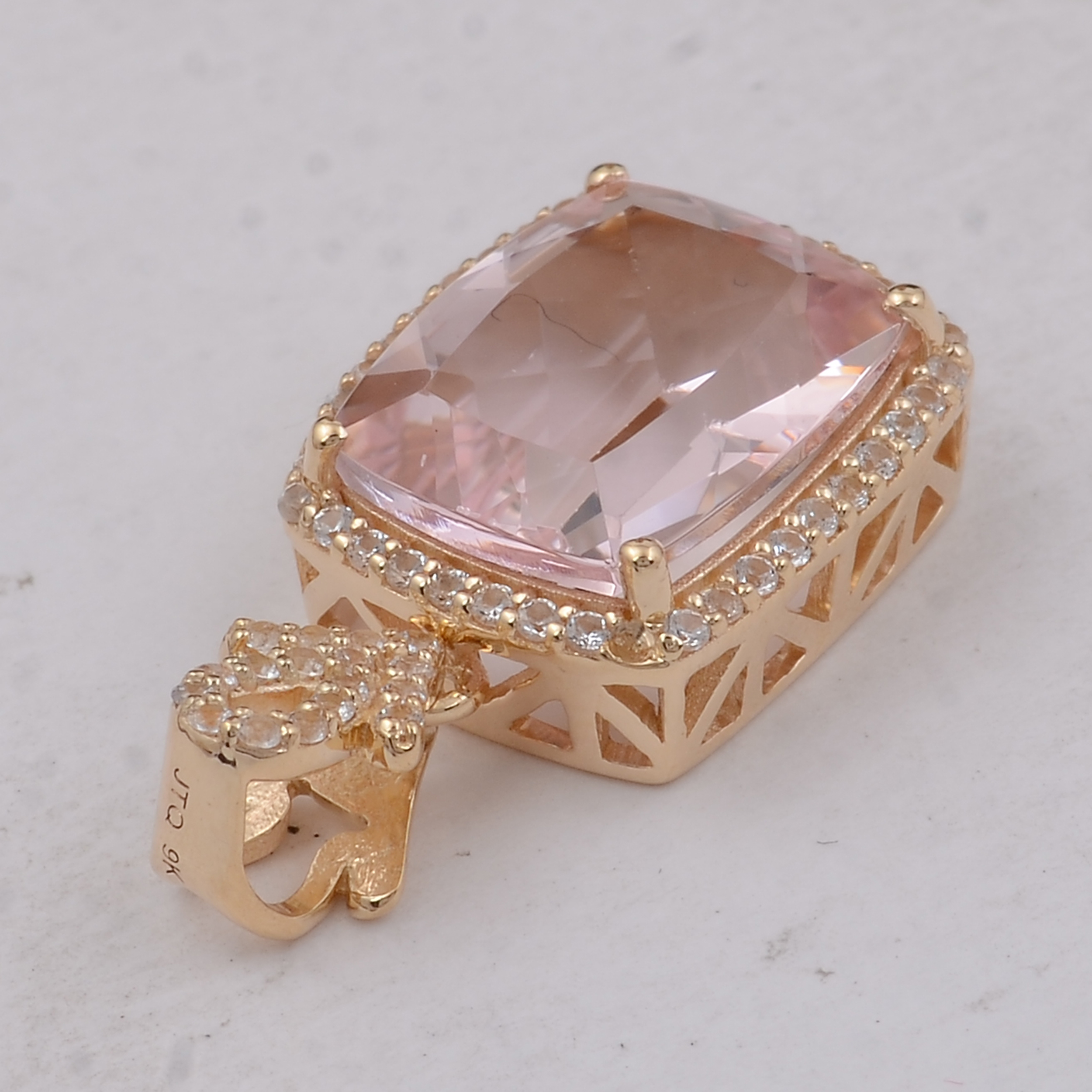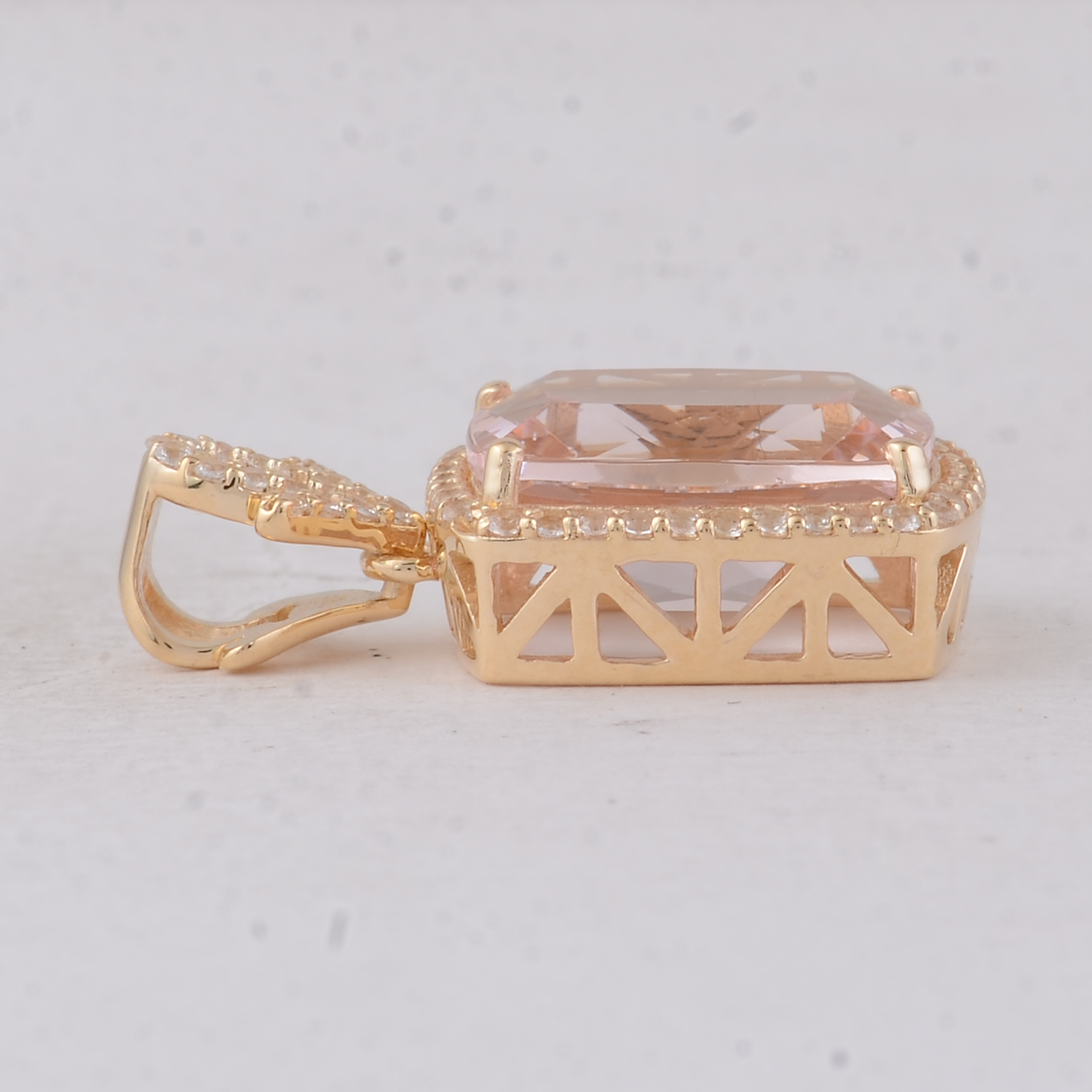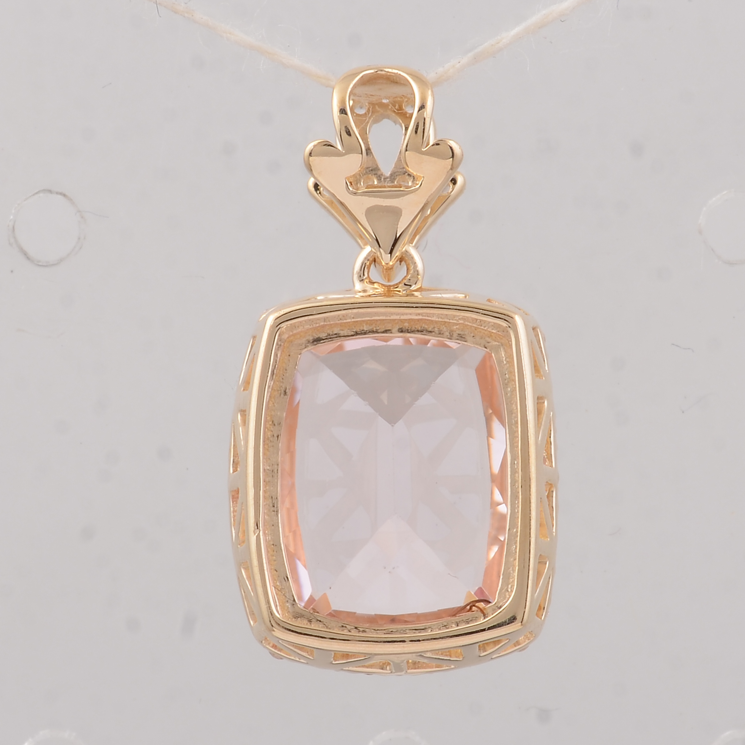 9K Gold 3.55 Ct Cushion Morganite Pendant