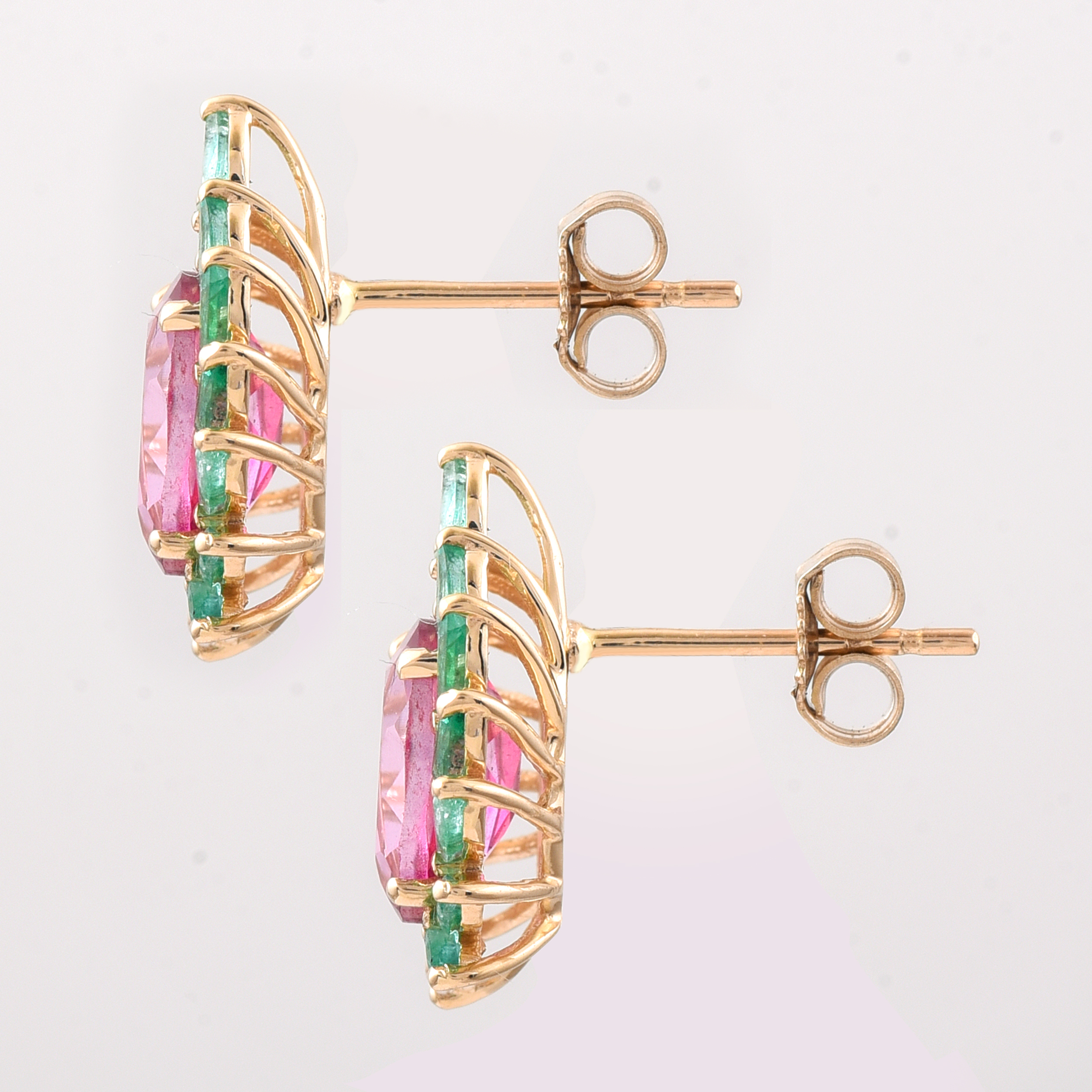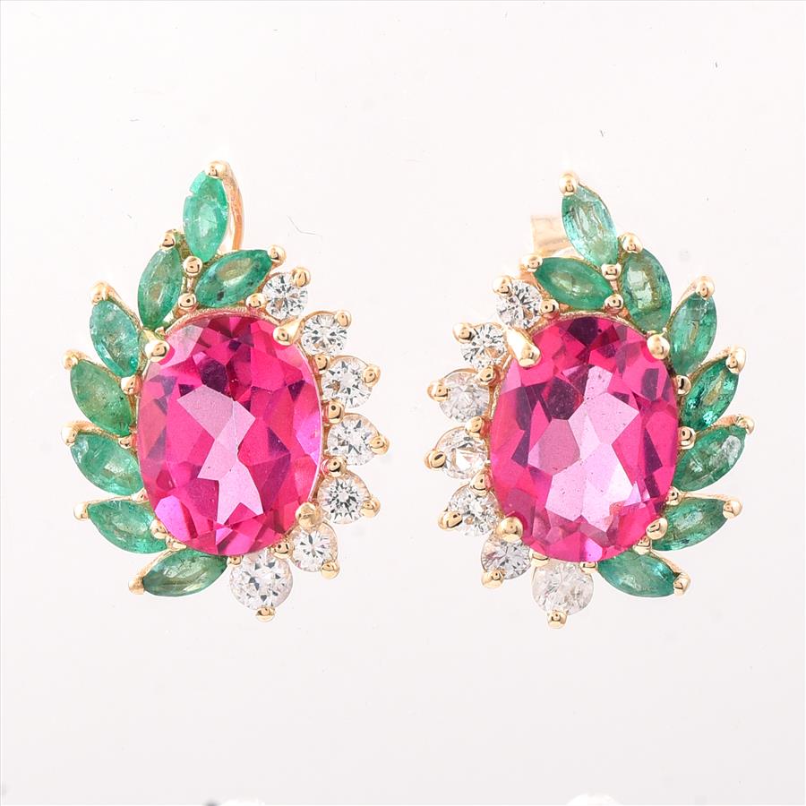 9K Gold 3.74 Ct Oval Pink Topaz Earrings