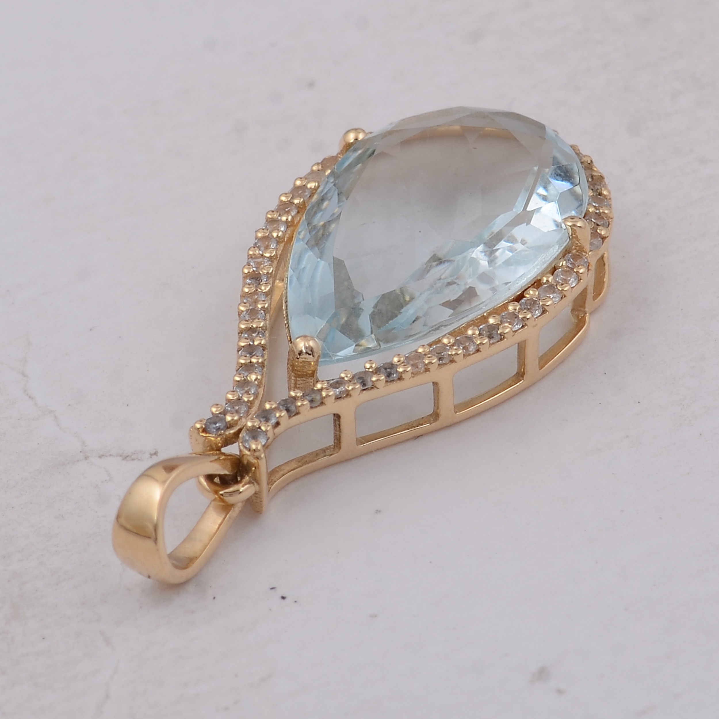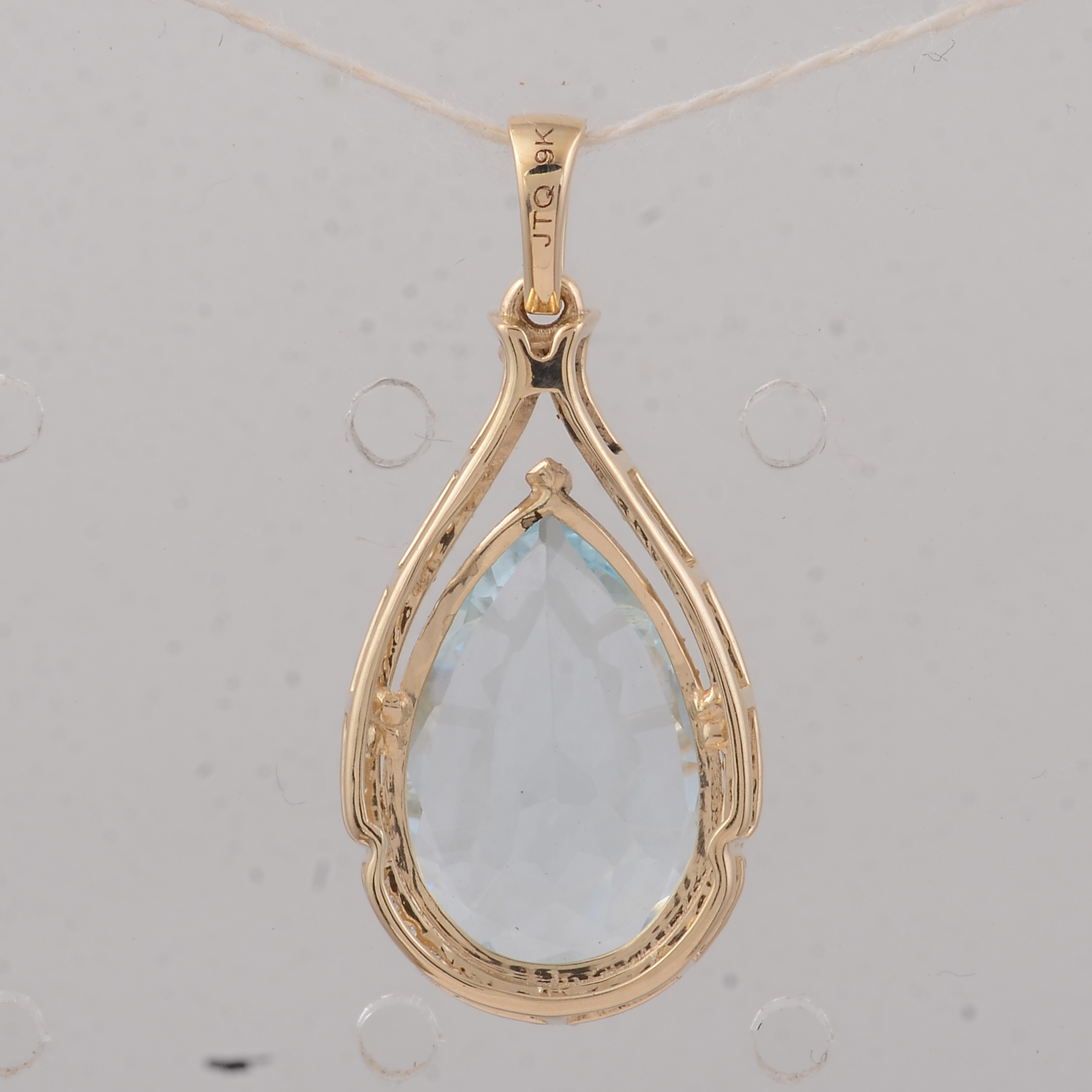 9K Gold 3.84 Ct Pear Aquamarine Pendant