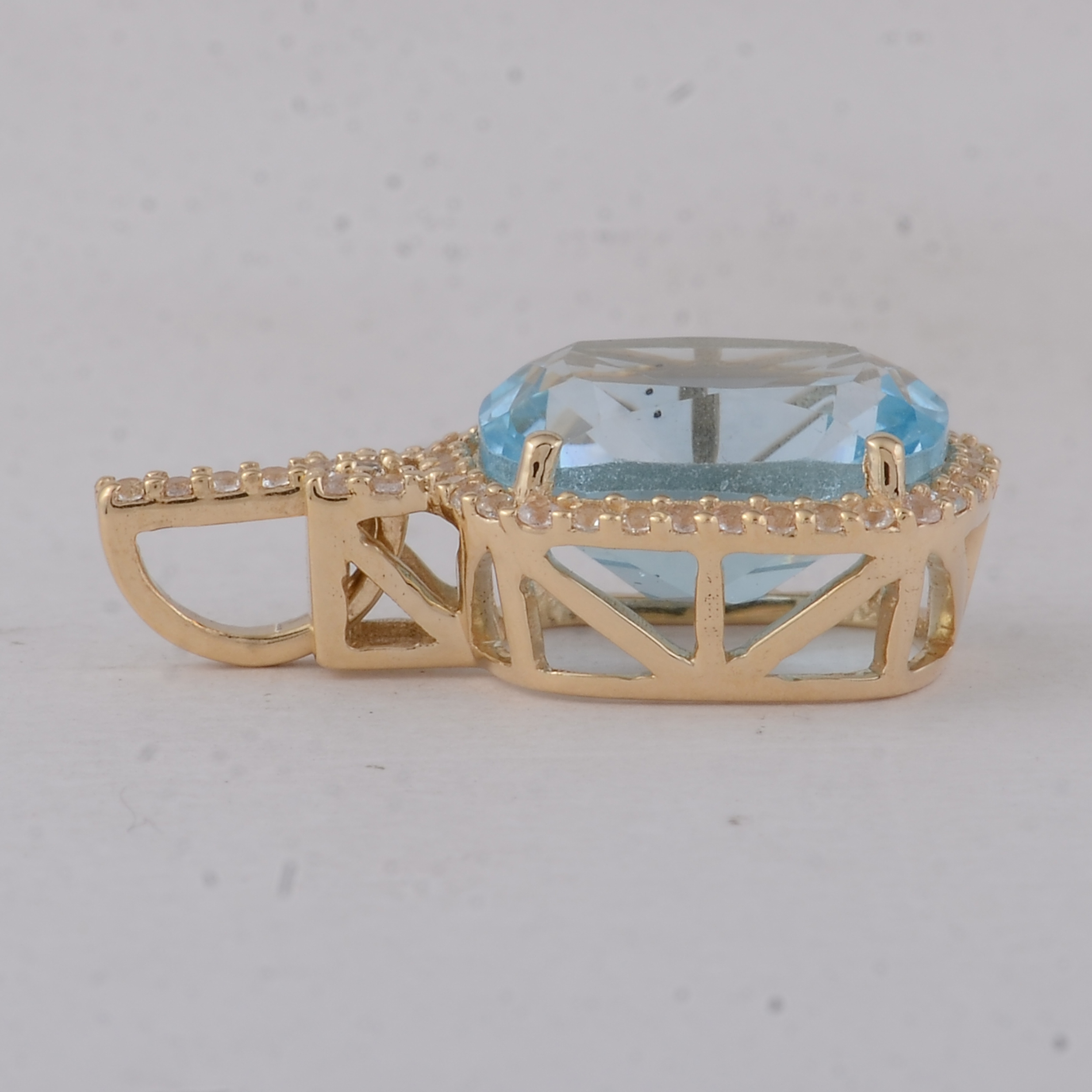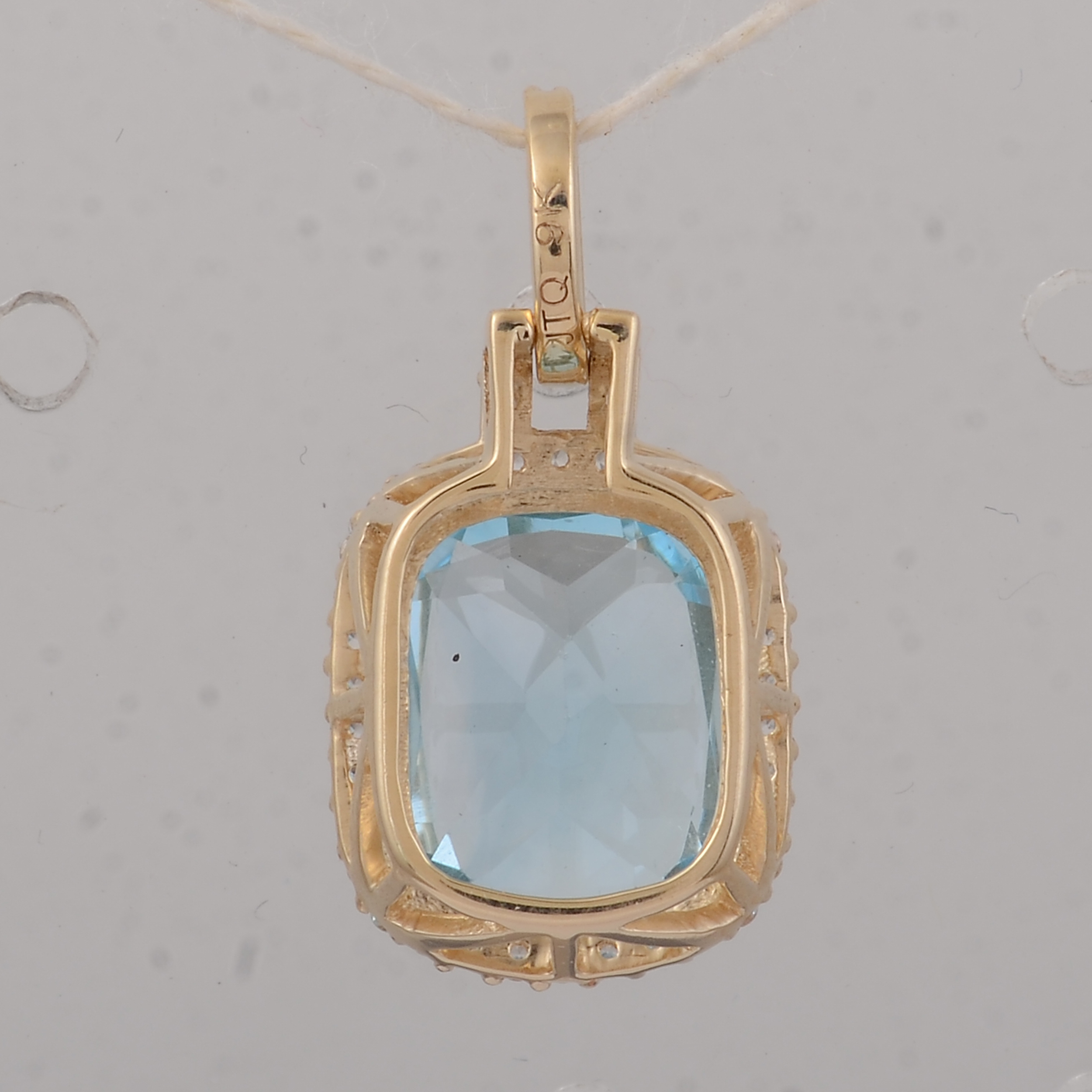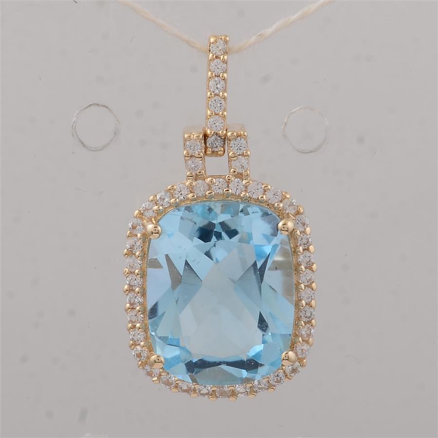 9K Gold 3.90 Ct Cushion Blue Topaz Pendant