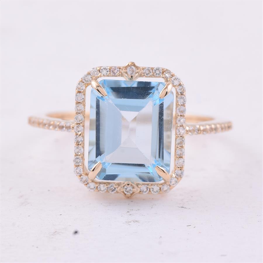 9K Gold 4.17 Ct Octagon Blue Topaz Ring 7 US Ring Size
