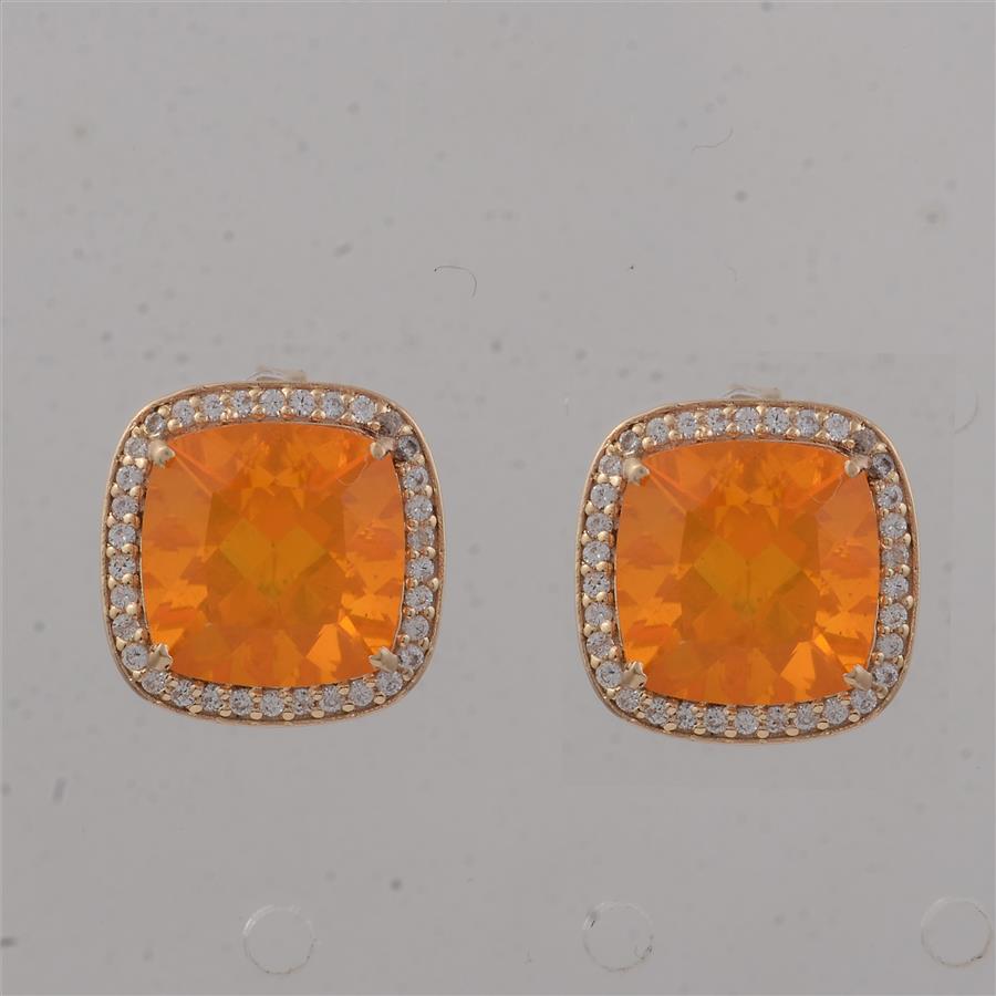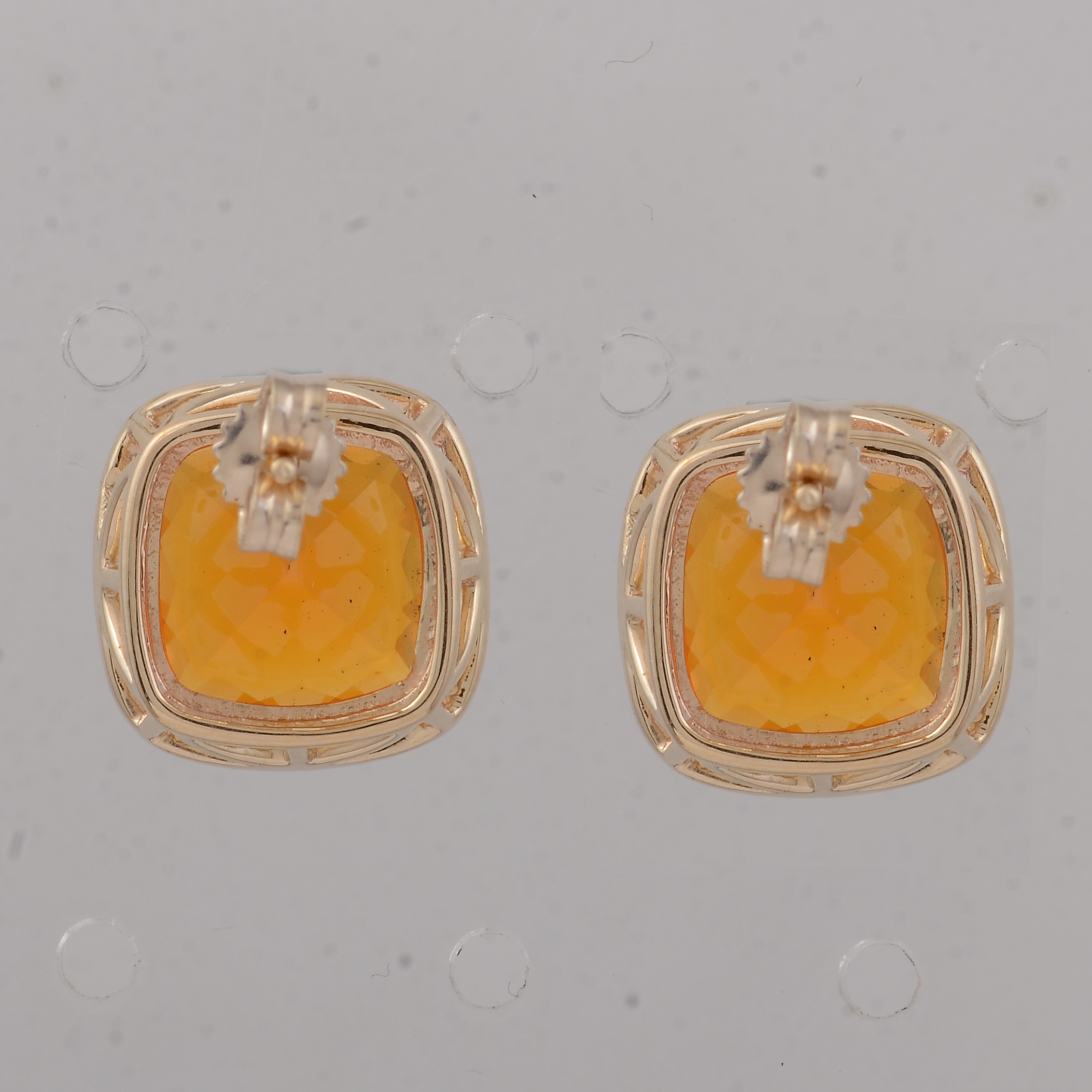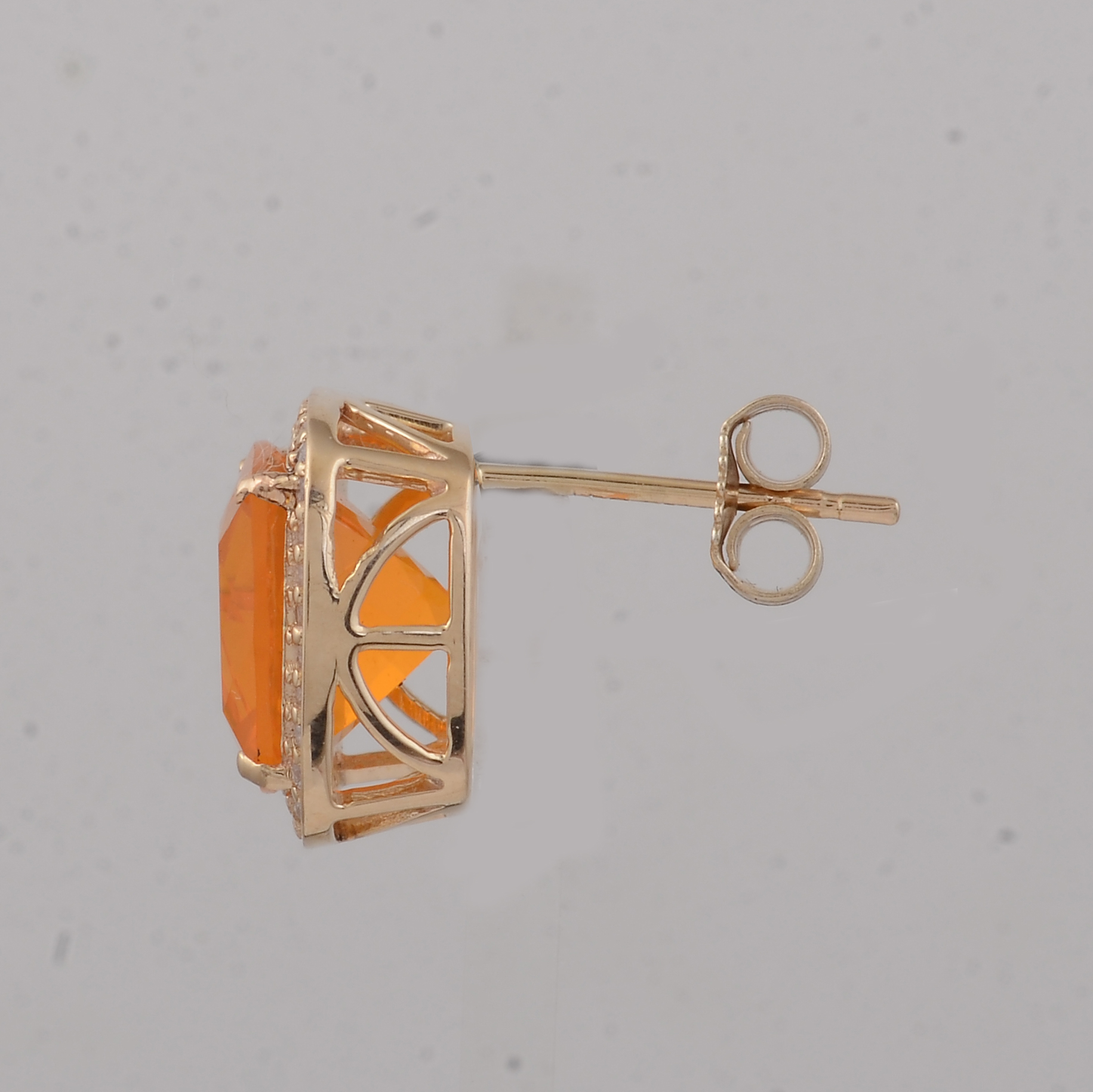 9K Gold 4.21 Ct Cushion B.R Fire Opal Earrings
