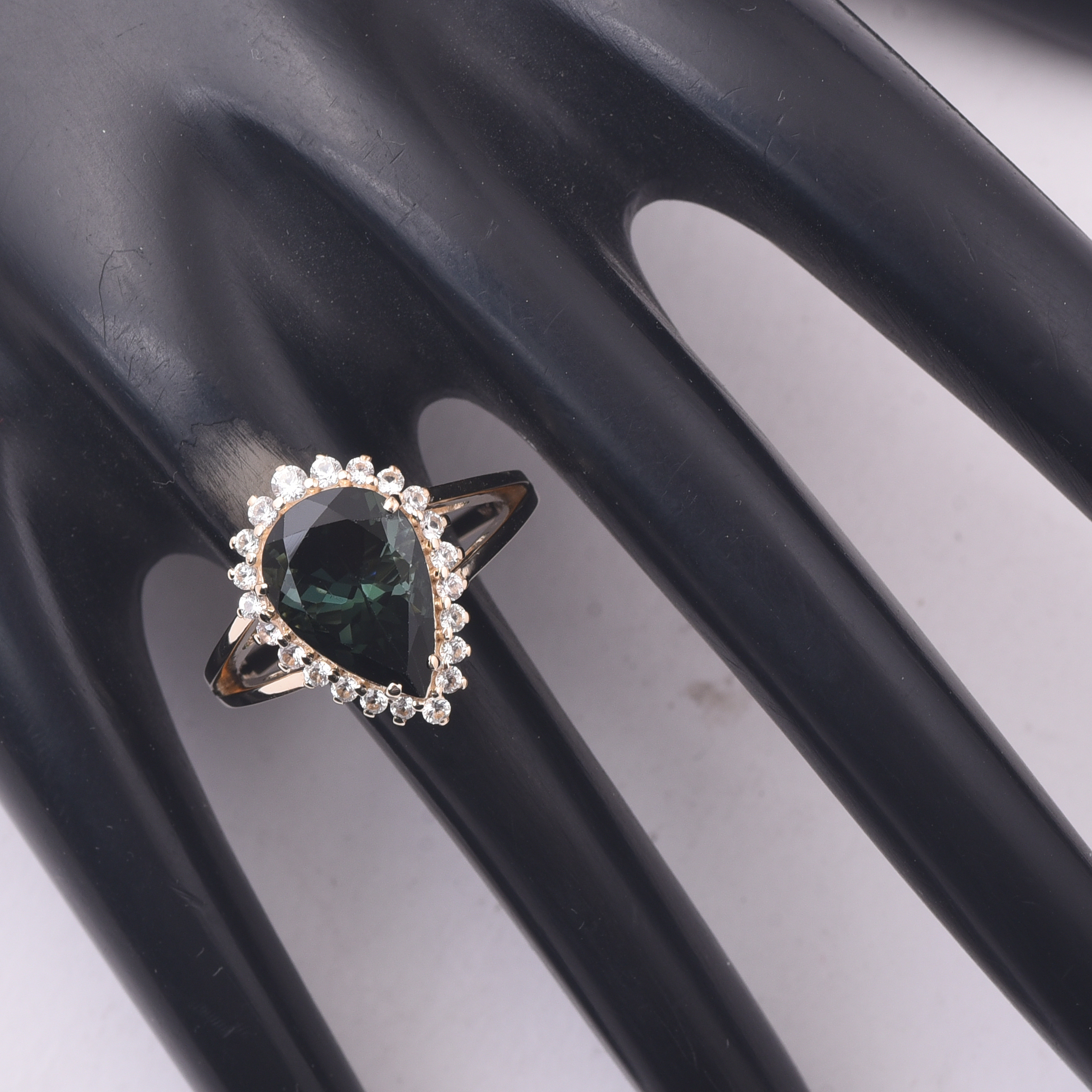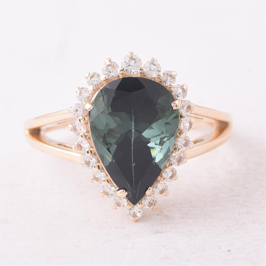 9K Gold 4.24 Ct Pear Tourmaline Ring 7 US Ring Size