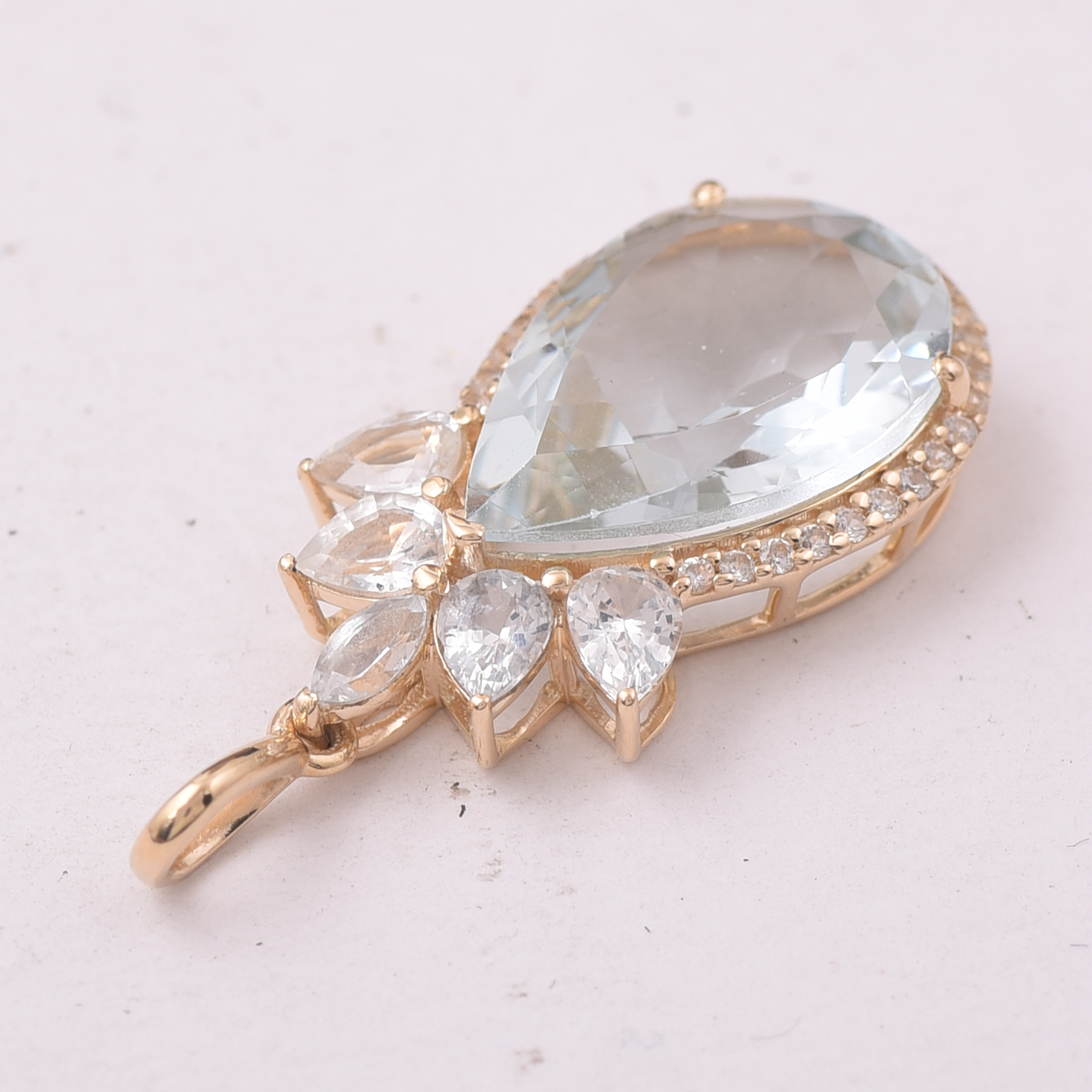 9K Gold 4.68 Ct Pear Aquamarine Pendant