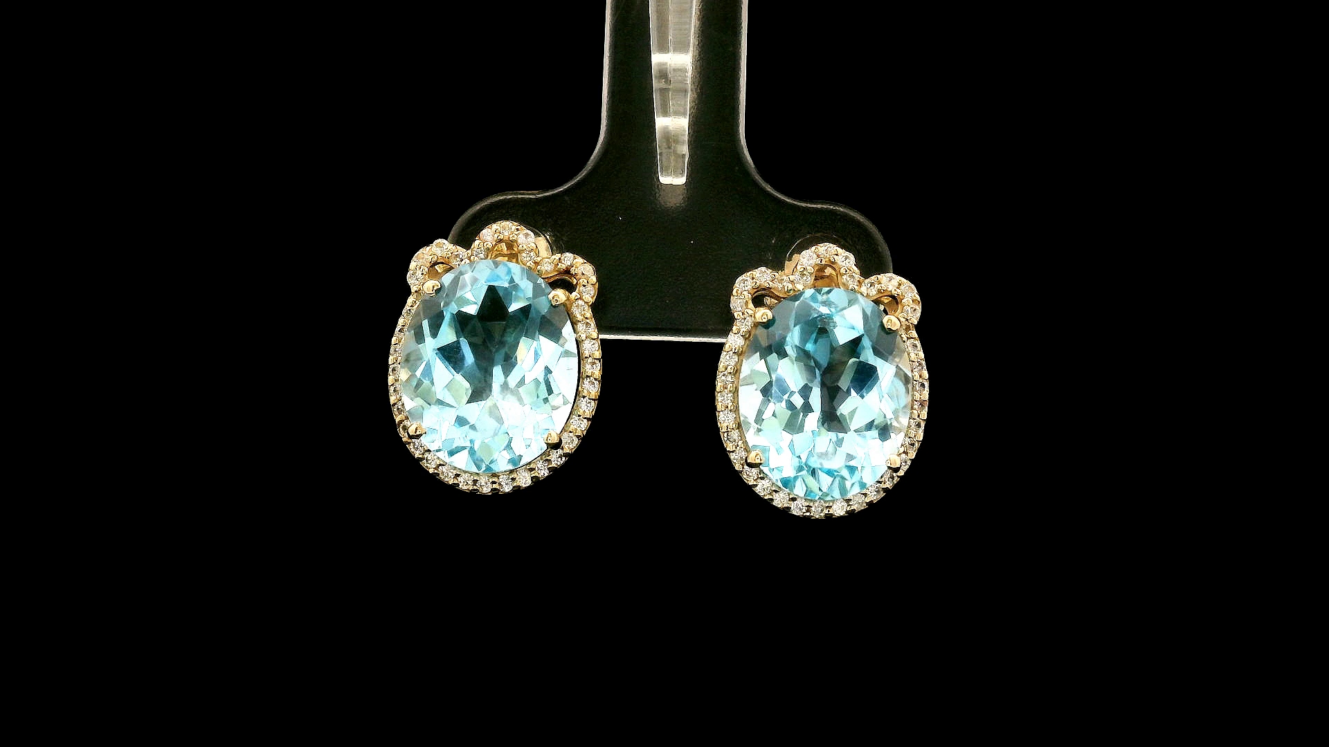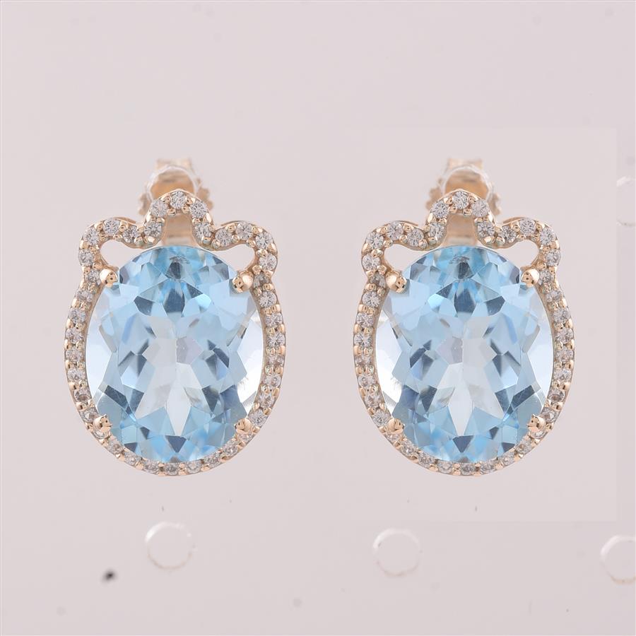 9K Gold 9.24 Ct Oval Blue Topaz Earrings
