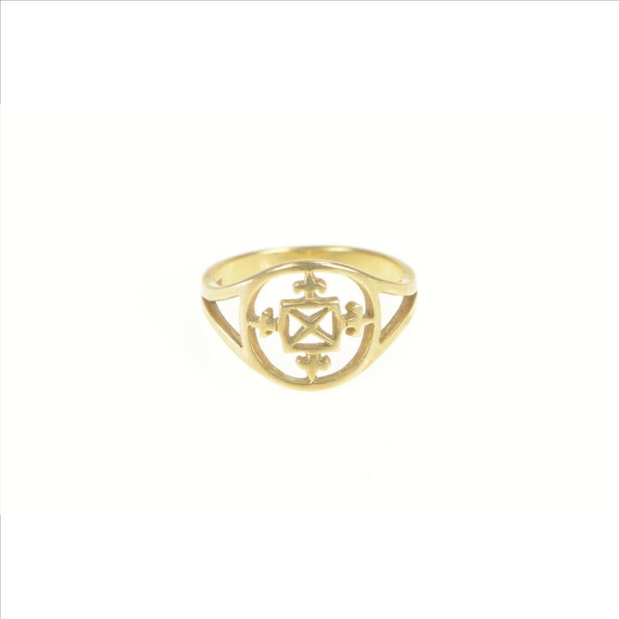 Item:  9K Ornate Geometric Filigree Vintage Statement Yellow Gold Ring, Size 5.5