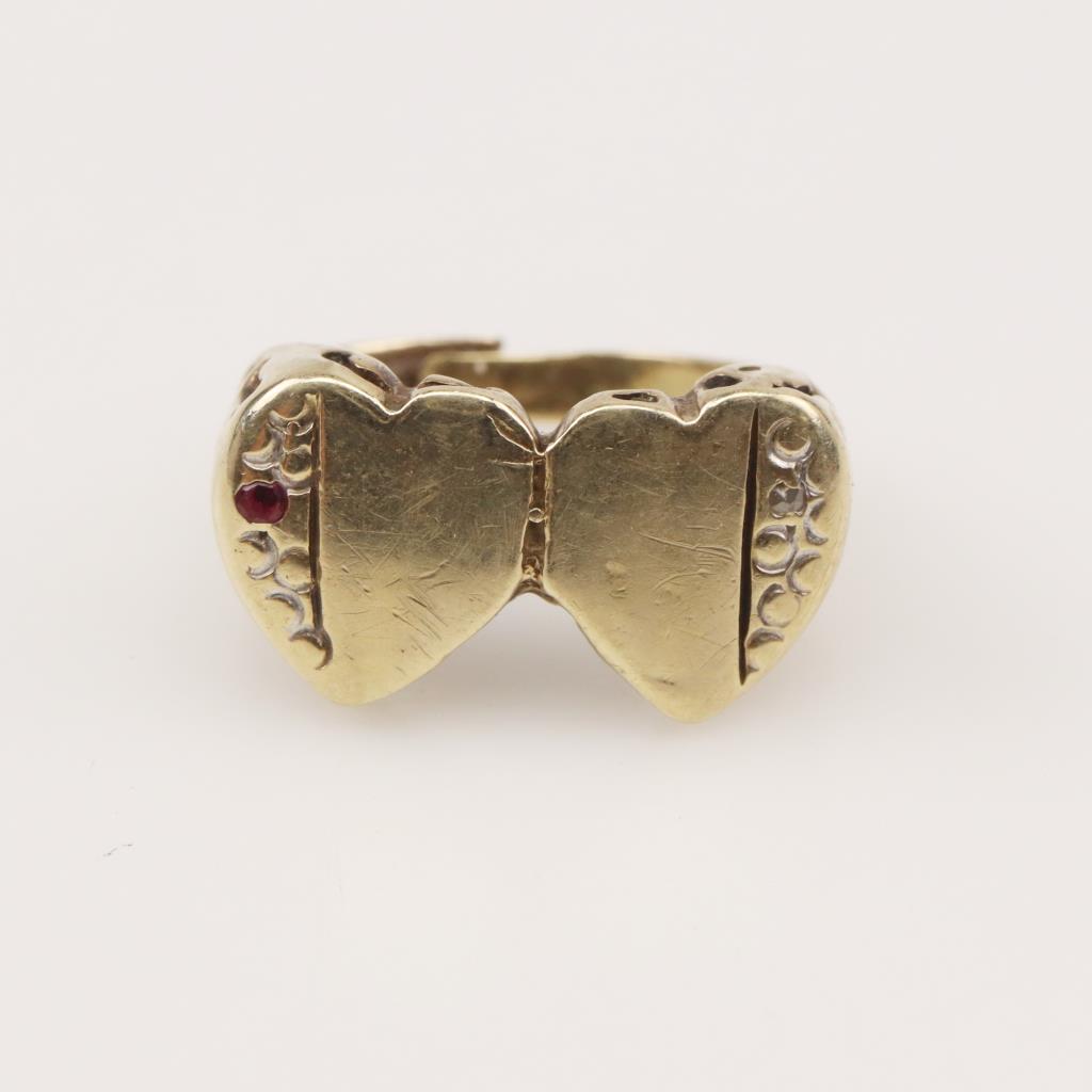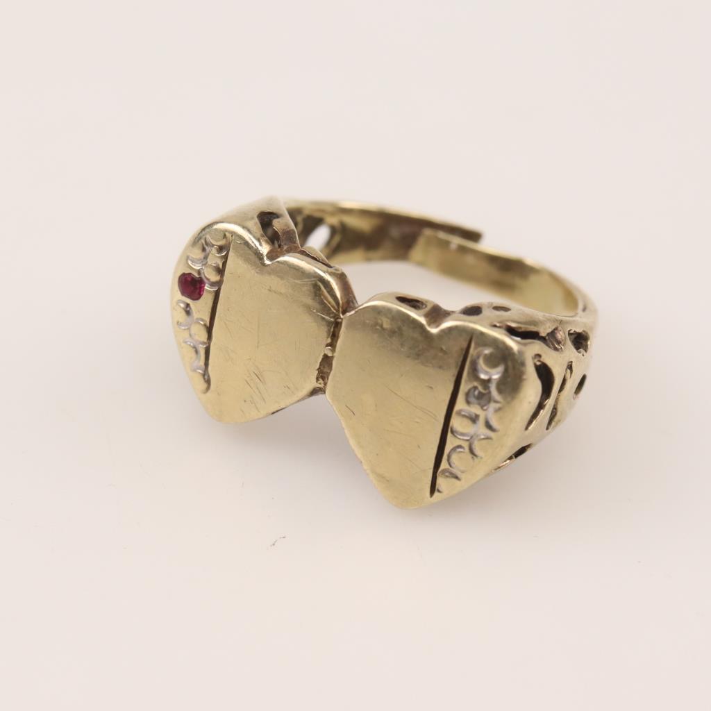 9kt Gold Double Heart Ruby Ring