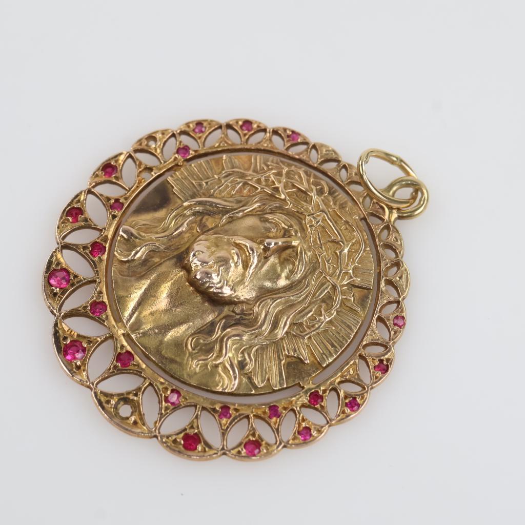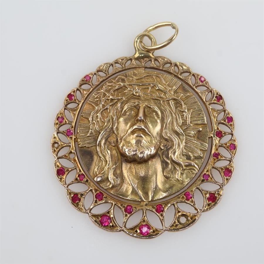 9kt Gold Pink Stone Religious Pendant