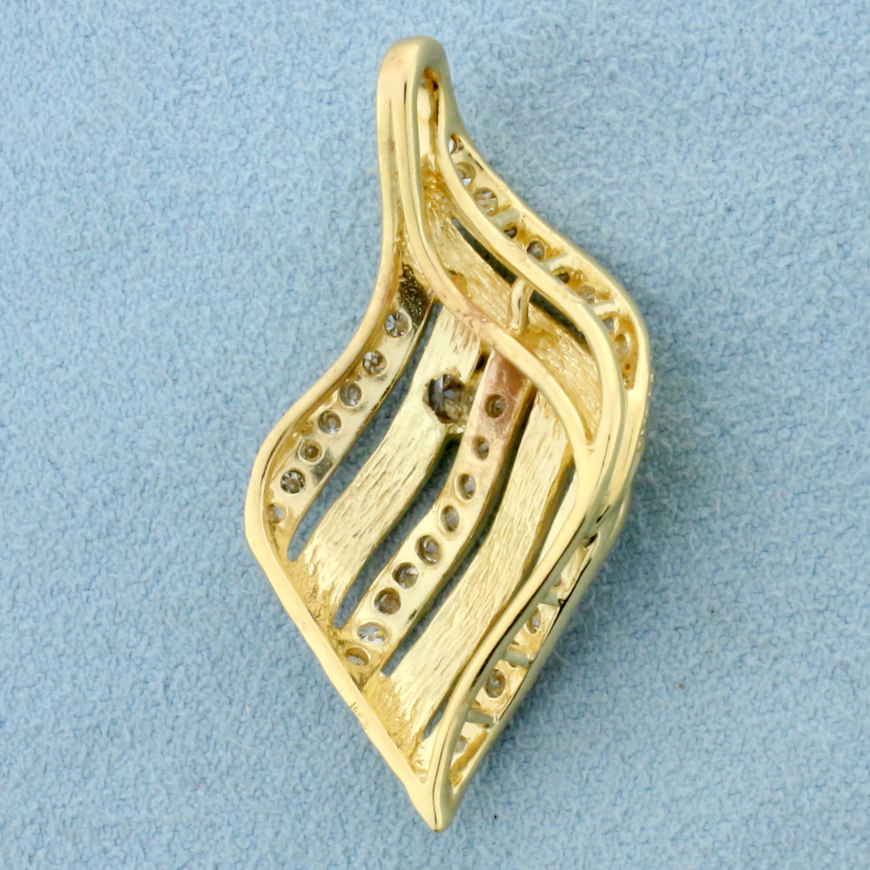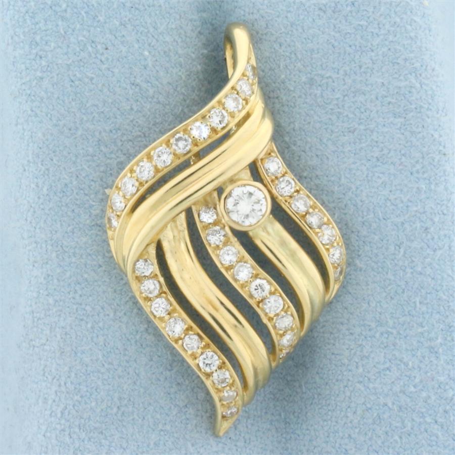 Abstract Wave Design Diamond Pendant in 14K Yellow Gold