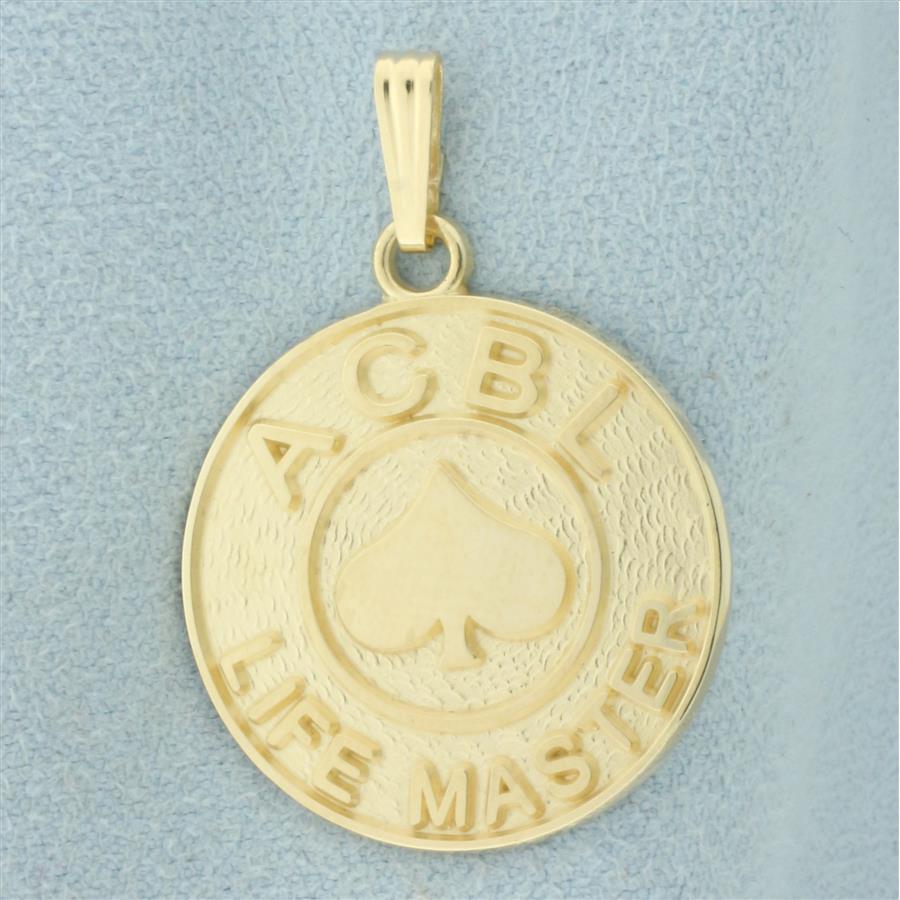 ACBL Life Master Bridge Pendant or Charm in 14k Yellow Gold