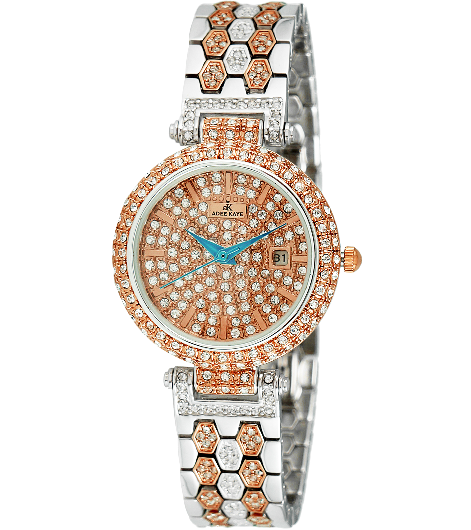 ADEE KAYE, 3-HANDS DATE DIAL, AUSTRIAN STONE , AK2526-L2R RETAIL AT (MSRP: $345.00)