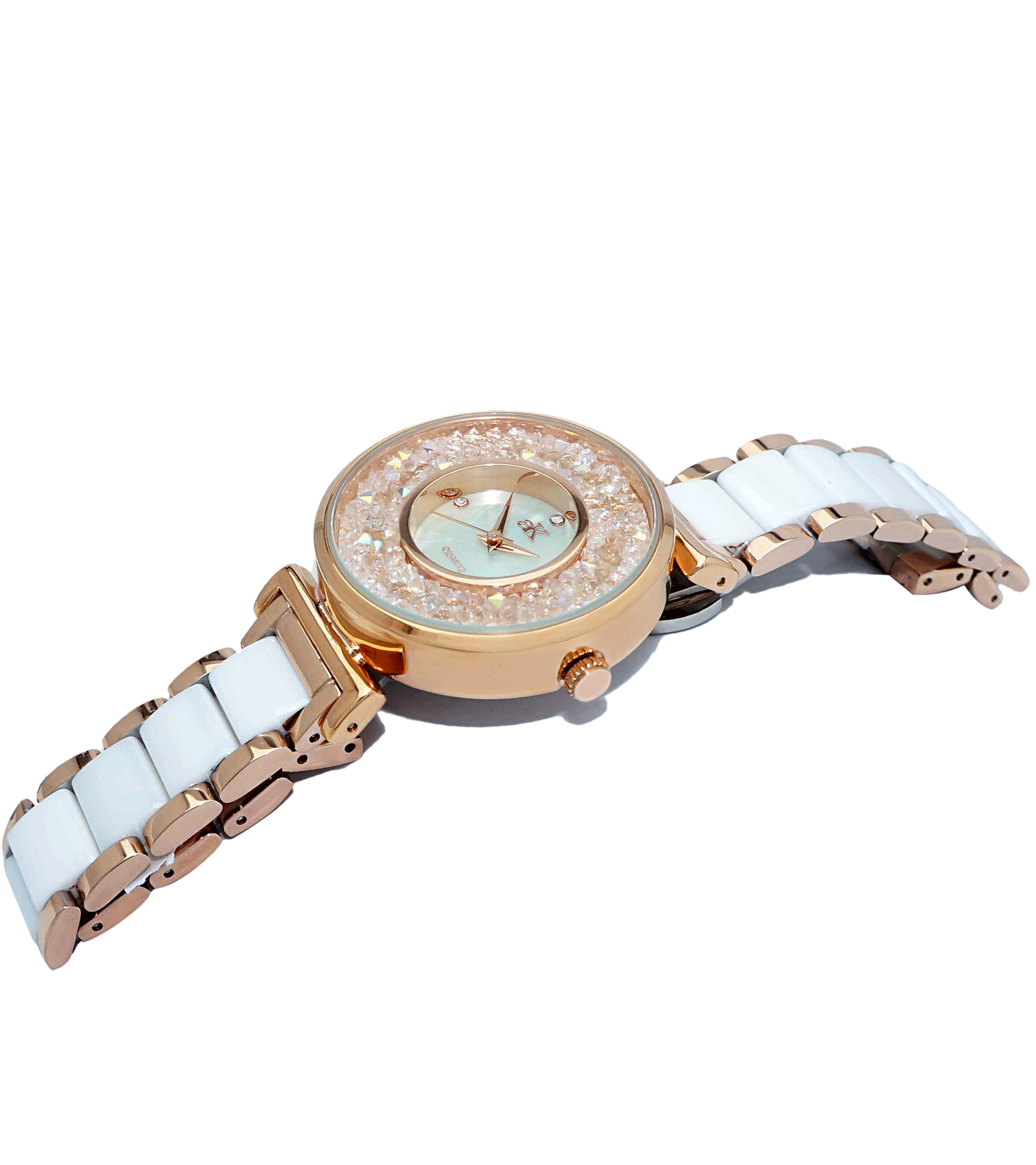 dial WHITE MOP, 4- SETTING AUSTRIN STONE, ROSE TONE