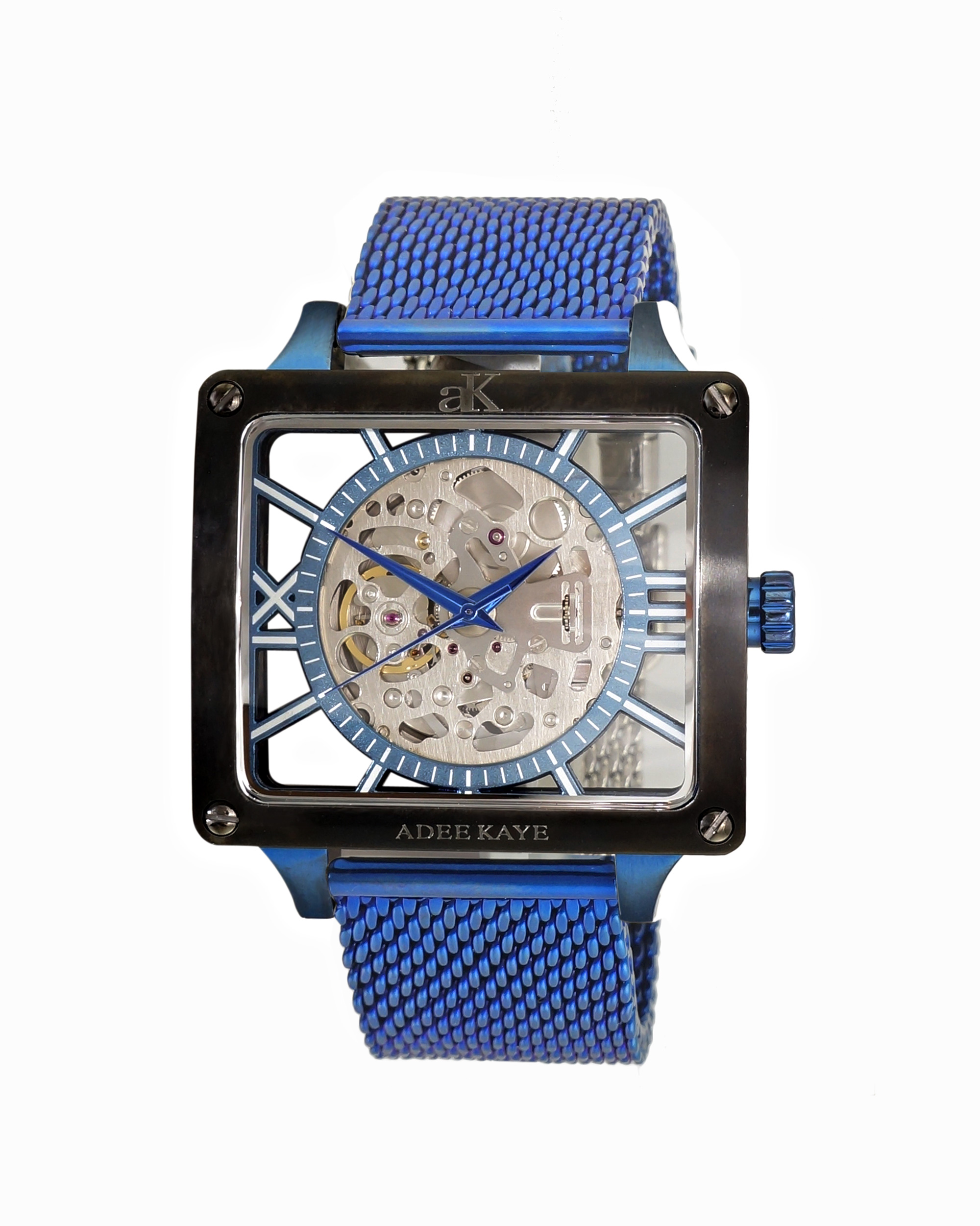 Adee Kaye Men's 24 Jewel Automatic Movement, Skeletal Design, Mesh Band, AK7474-50BUC-BKBZ, RETAIL AT $745.00