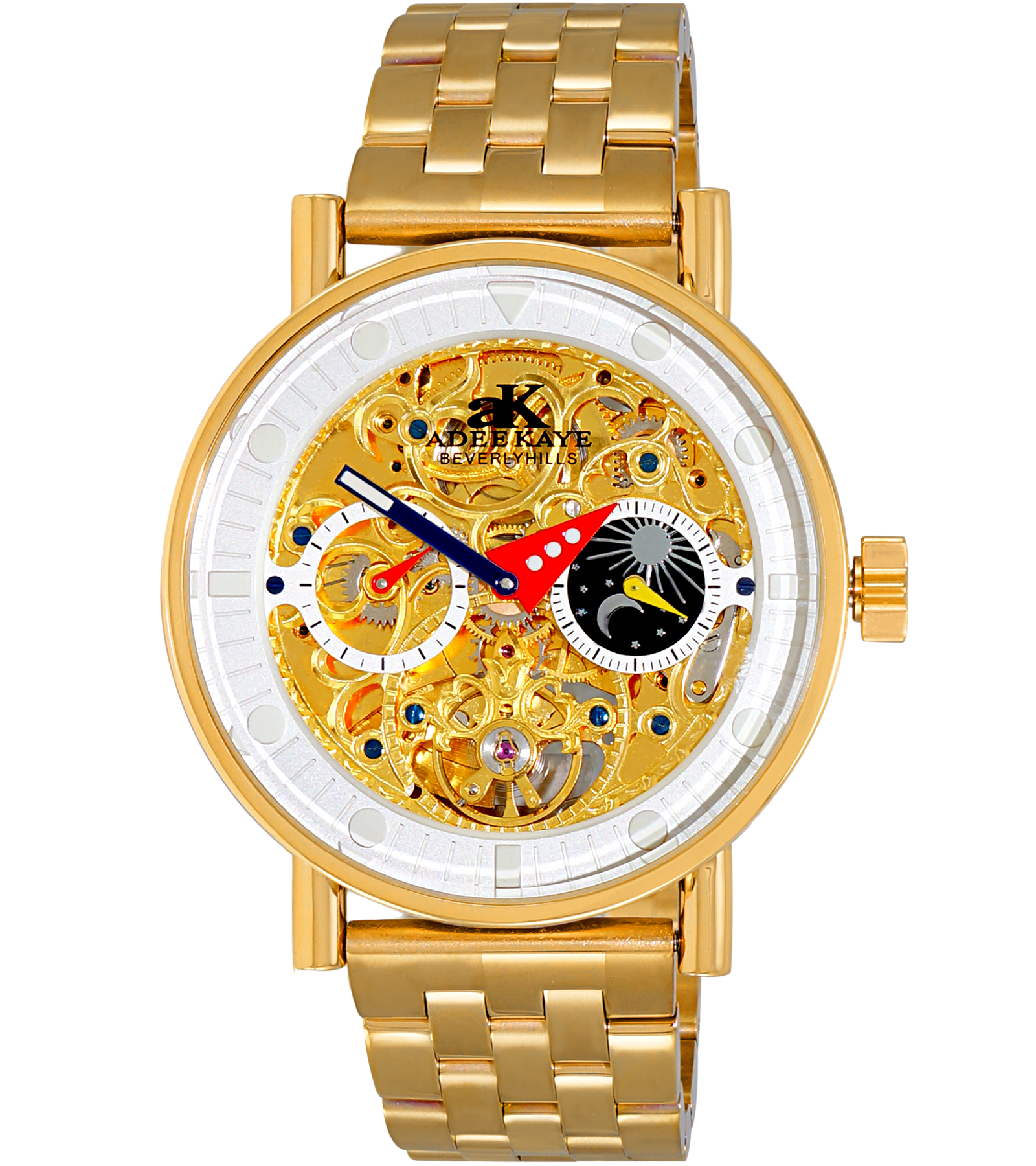 ADEE KAYE Skeleton Automatic -21 Jewels Movement , Sun and Moon Phase, AK2266-20_G0, Retail at (MSRP: $750.00)