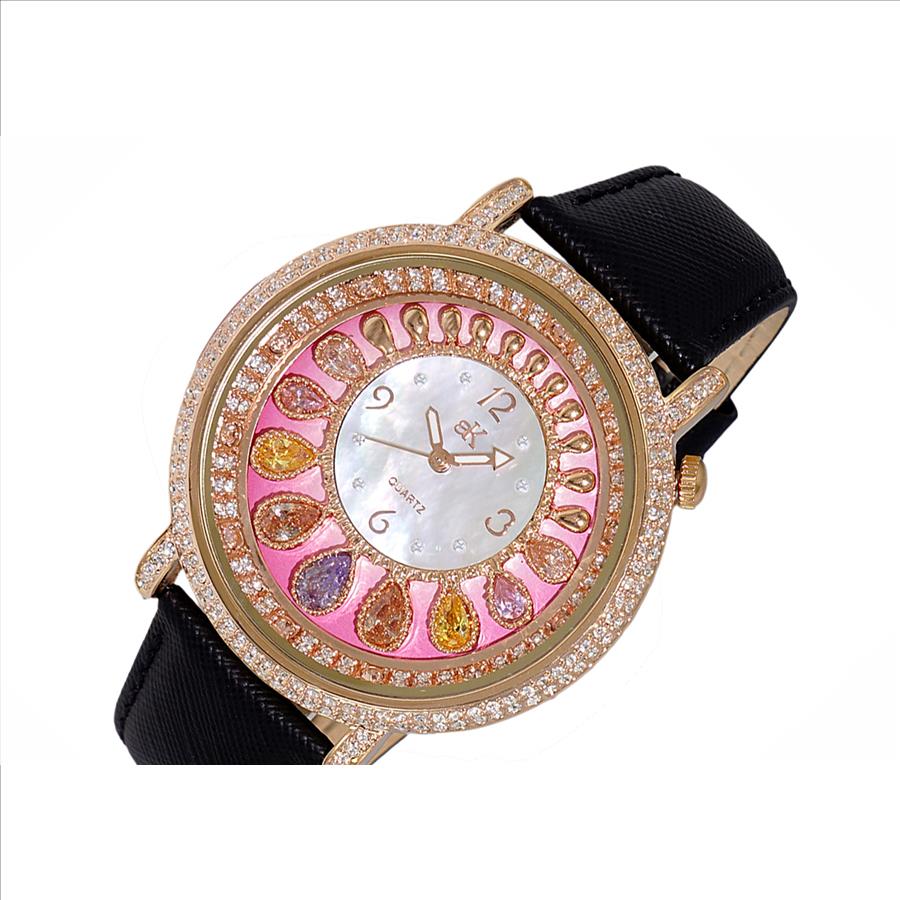 ADEE KAYE WATCHES, MULTI-COLOR STONES, MOTHER OF PEARL 3-HANDS PINK DIAL,ROSETONE AK2112-L RETAIL AT (MSRP: 345.00)