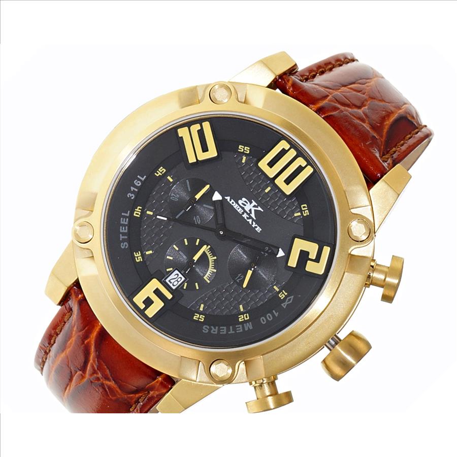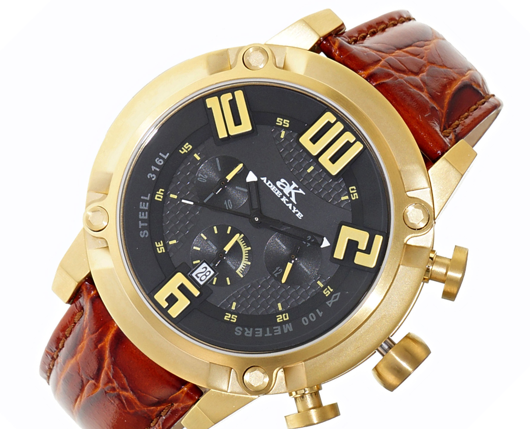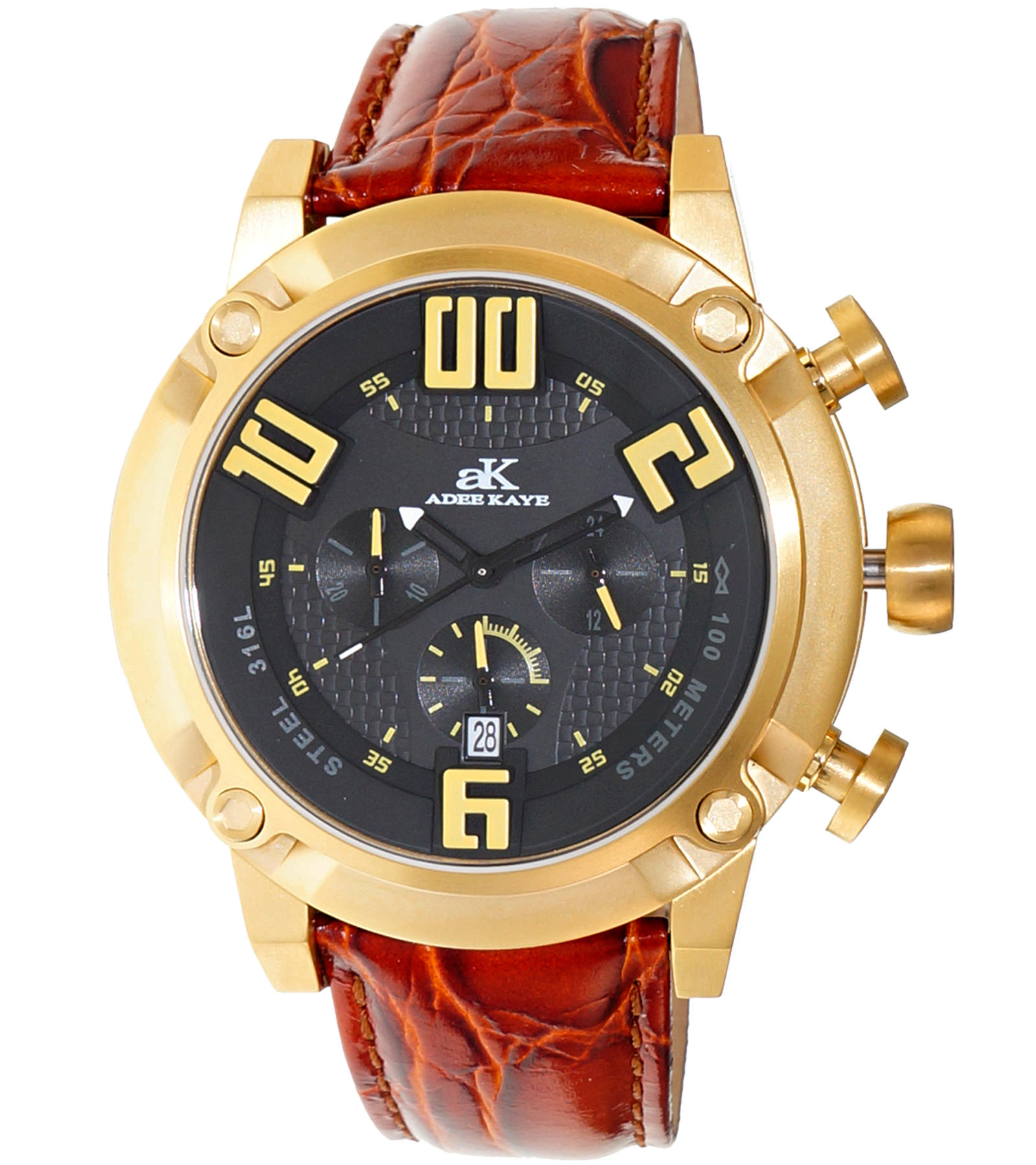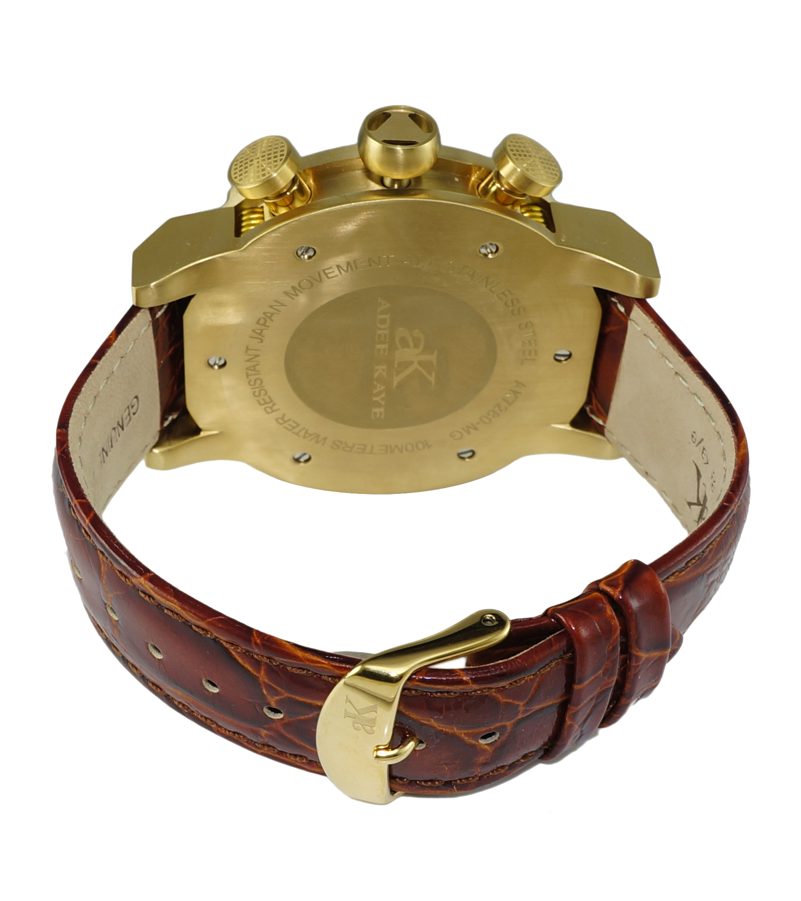 ADEE KAYE WATCHES,Double layer dial, Chronograph Movement, Genuine Leather band, AK7280-MG-RDO, RETAIL AT $775.00