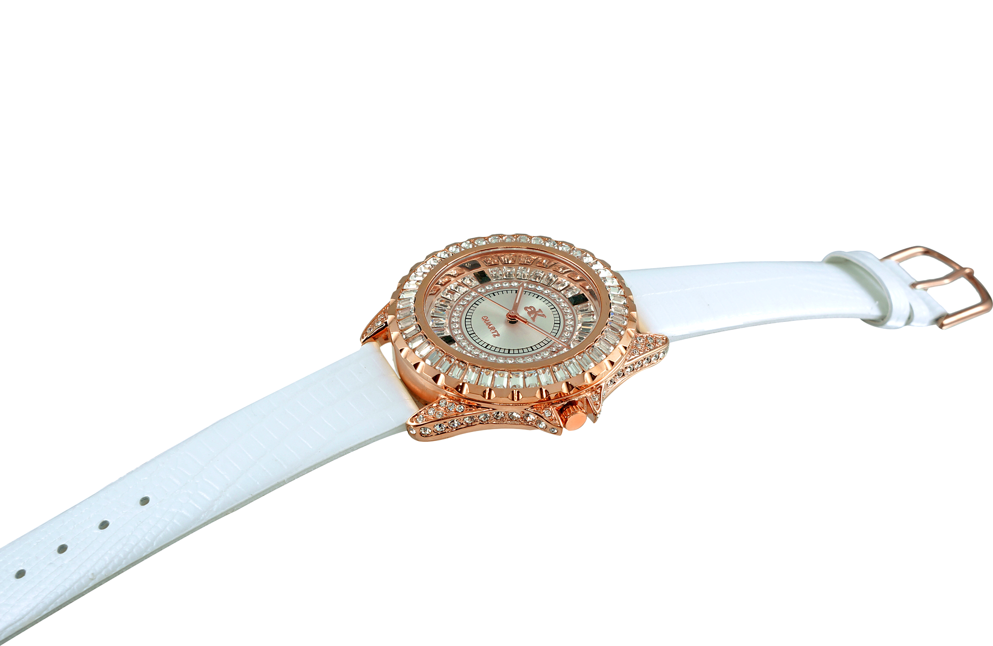 CASE MATERIAL  RHODIUM PLATED , BRASS ROSE TONE CASE 115 PCS  WHITE CRYSTAL CASE AND BEZEL