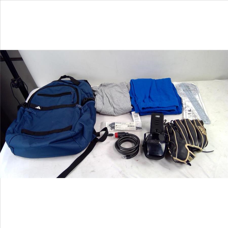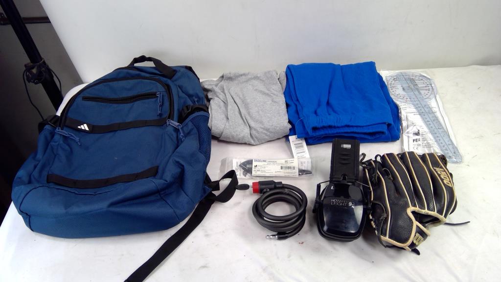 Adidas Backpack, Wilson 10-1/2" Glove, 2XL T-Shirt, Medium Sweats, And More, 7 Pieces