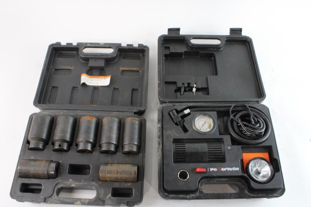 Get a great deal with this online auction presented by PropertyRoom.com on behalf of a law enforcement or public agency client. - Brand: PowerToGo Air Compressor, Pittsburgh Lug Nut Socket Set
