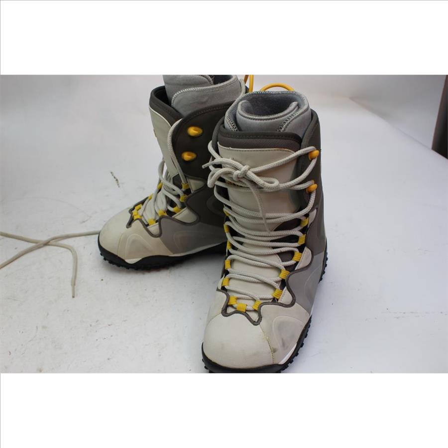 Get a great deal with this online auction for shoes presented by Property Room on behalf of law enforcement or public agency client. Style/Model: Airwalk Snowboard Shoes Size: Mens 7 / Womens 8 Color: gray/white /beige Physical Condition: Good condition, appears new or minimally used, has some visible wear, is a little dirty Condition: Good